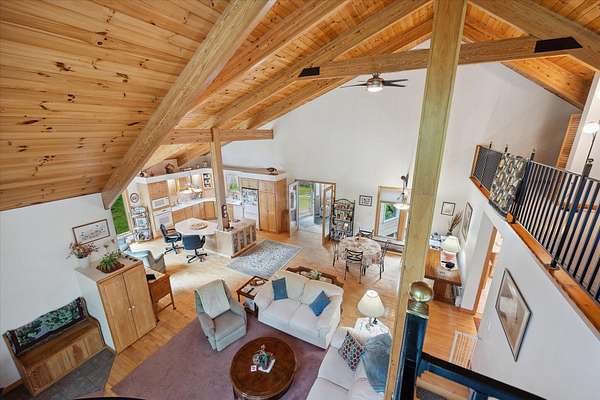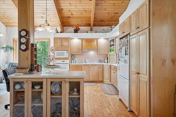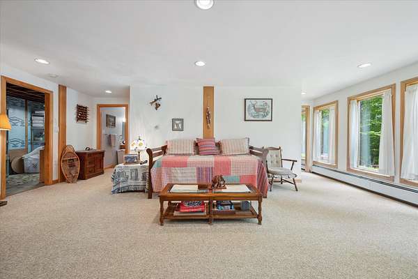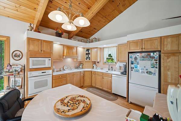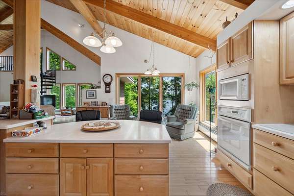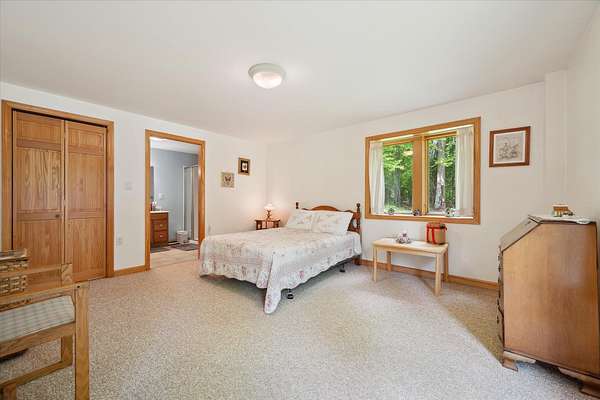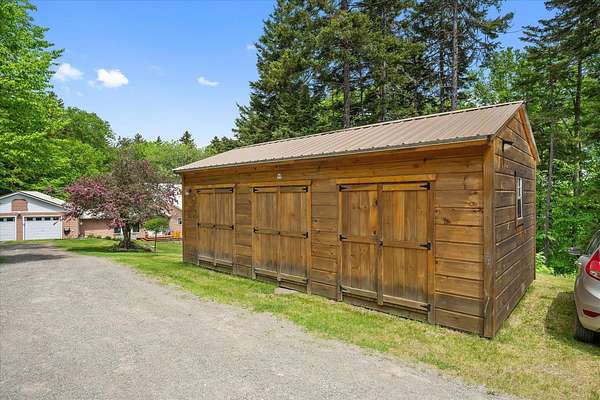 This beautiful home sits at the end of the camp road and abuts state owned conservation land. The perks and benefits of being the last one on the road and having a conservation land neighbor are often overlooked. No constant daily drive byes, no further development beyond your property offers a greater level of privacy than other lots on the road. The lake is at the base of Mount Chase Mountain, in Mount Chase, Maine. It is 10 miles Northwest of the full service town of Patten, about 17 miles from the North gate of Baxter State Park and the North entrance to Katahdin Woods and Waters National Monument. Only 90 minutes to the Bangor International Airport in Bangor, Maine. The lake abounds with native brook trout, salmon, bass and is home to many nesting loons. The Shin Pond Village is only 2.5 miles from the property, a well known snowmobile and ATV trail destination. The living space is an open concept with large beams and vaulted wood ceilings flooded with natural light. The expansive glass can give one the feel of being outside from within the home. There are two generously sized bedrooms with dedicated full bathrooms and a large sleeping loft for friends and family. The large fully equiped kitchen flows nicely into the dining area and livingroom with magnificent cathedral ceilings throughout. The large entry connecting the main home to the heated 2-car garage is very inviting and provides a wonderful space to sit and enjoy natures beauty that surrounds you. There are also 2 decent sized storage buildings to house any additional lawn and garden or recreational items. The 4.34+/- acre lot assures privacy and potential further expansion of the structures currently on the lot. All with the added comfort of a whole house backup generator for those unexpected power interruptions. This could be your primary year round home or a recreational retreat. Located in one of the most desireable destinations in Maine. Reach out for more details!