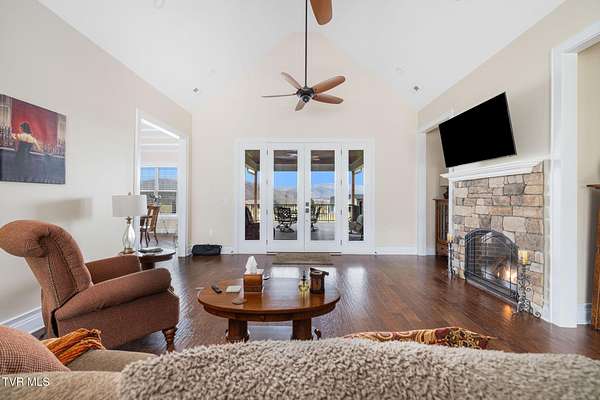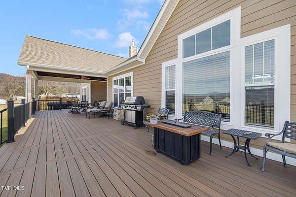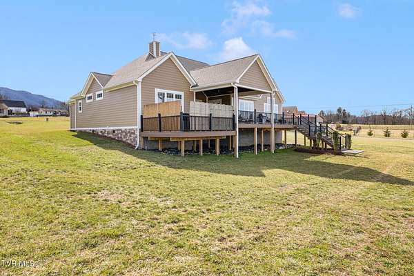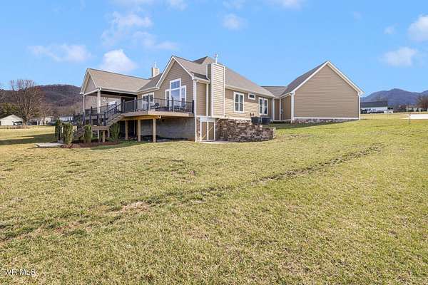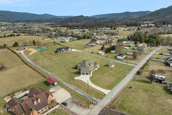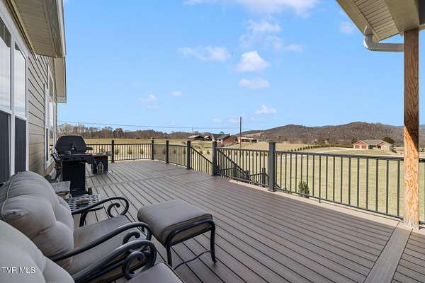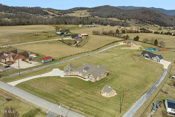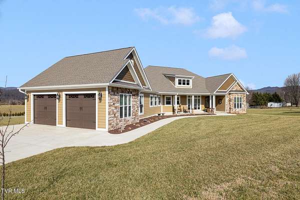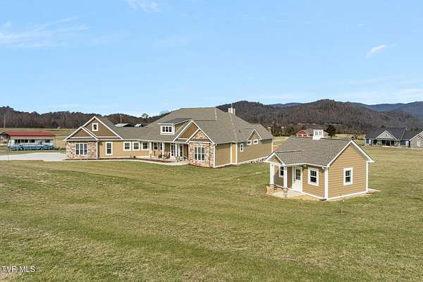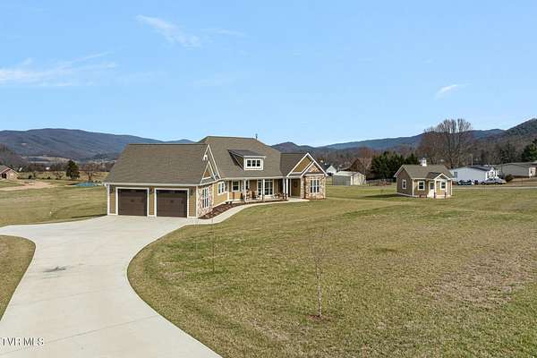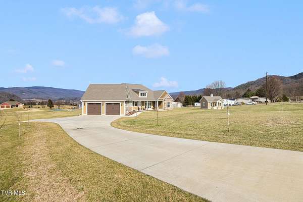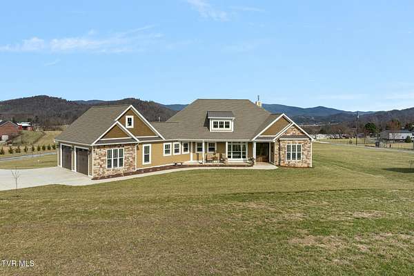 Stunning custom home with breathtaking mountain views and exceptional craftsmanship throughout! This 3,300 sq ft home offers a thoughtfully designed layout ideal for both everyday living and entertaining. The spacious great room features 16-ft cathedral ceilings, a gas fireplace, and expansive windows capturing stunning views. The gourmet kitchen includes an oversized island, custom cabinetry, and bar style seating overlooking the breakfast nook and living area with a second fire place. The private primary suite features 15ft ceilings, a luxurious bath, and a large walk in closet, while additional bedrooms are located on the opposite side of the home for added privacy. enjoy outdoor living on the partially covered deck with propane heaters, plus a hot tub that is negotiable. Additional highlights include two-car garage, beautiful curb appeal, and peaceful mountain surroundings. A rare opportunity to own a nearly new home with incredible views!