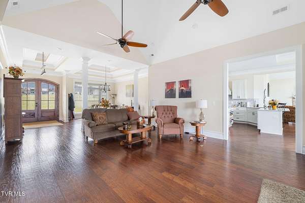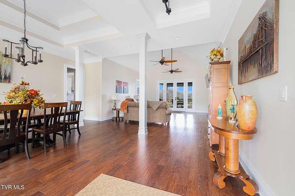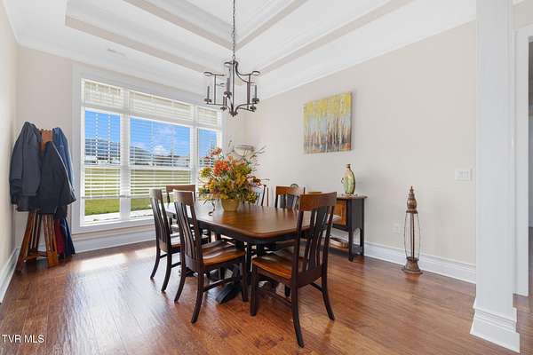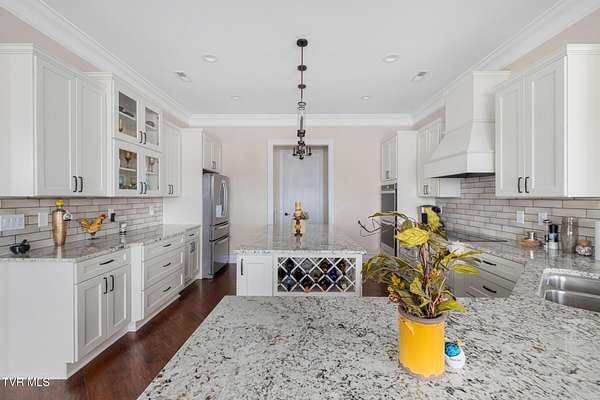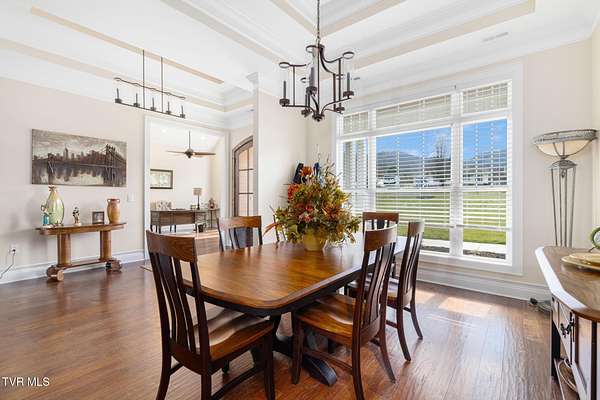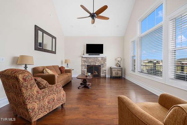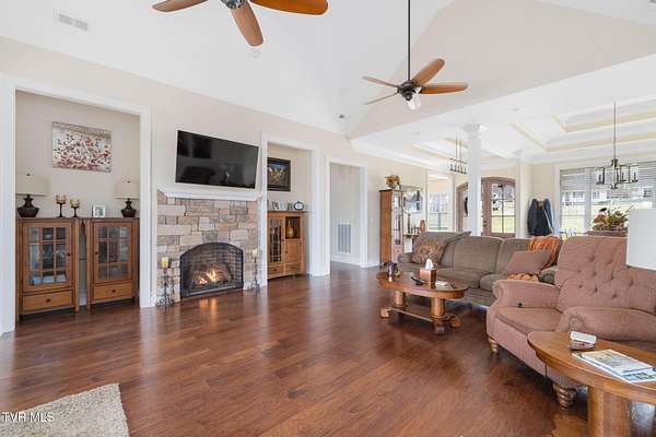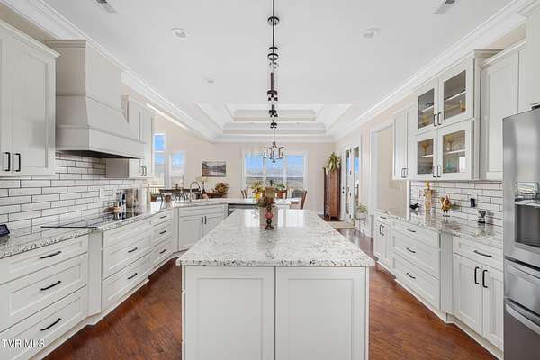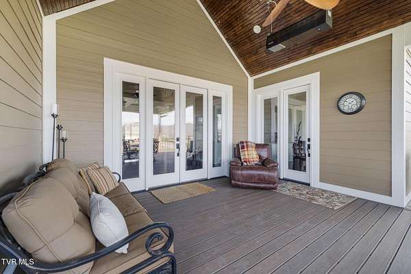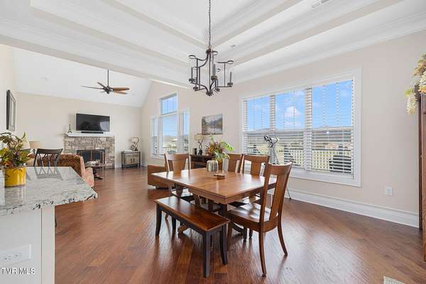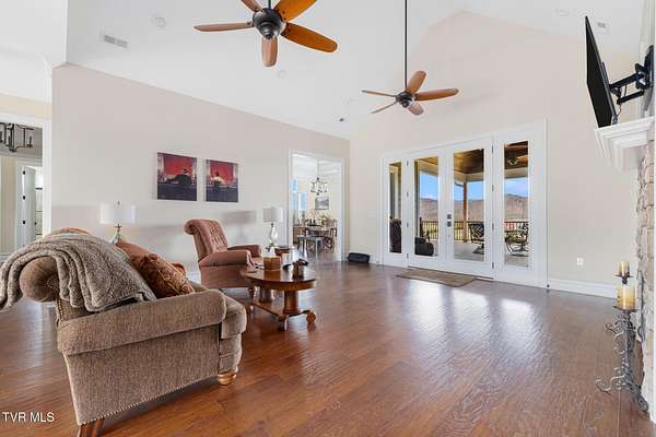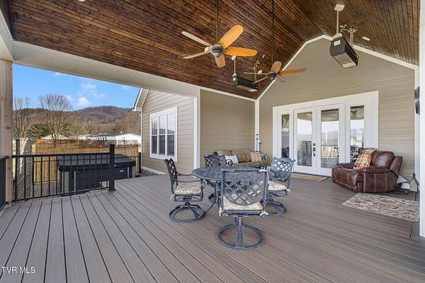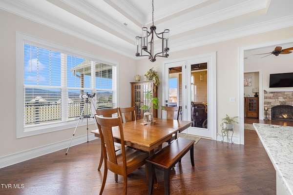 Stunning custom home with breathtaking mountain views and exceptional craftsmanship throughout! This 3,300 sq ft home offers a thoughtfully designed layout ideal for both everyday living and entertaining. The spacious great room features 16-ft cathedral ceilings, a gas fireplace, and expansive windows capturing stunning views. The gourmet kitchen includes an oversized island, custom cabinetry, and bar style seating overlooking the breakfast nook and living area with a second fire place. The private primary suite features 15ft ceilings, a luxurious bath, and a large walk in closet, while additional bedrooms are located on the opposite side of the home for added privacy. enjoy outdoor living on the partially covered deck with propane heaters, plus a hot tub that is negotiable. Additional highlights include two-car garage, beautiful curb appeal, and peaceful mountain surroundings. A rare opportunity to own a nearly new home with incredible views!