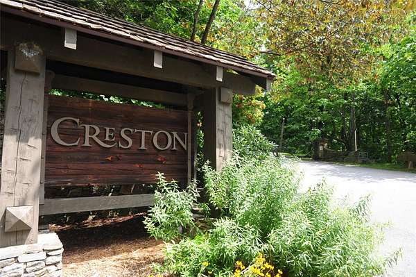 From I-40E take exit 64 Black Mountain. South on Hwy 9 South for 6.5 miles. See Creston sign on left and turn left onto Crooked Creek Road, which later becomes Mt. Hebron Road. Veer left onto Creston Drive. Once inside the Creston gate, make a right on Kestrel Drive. Right on Ironwood Lane. Lot on right, see sign.