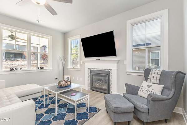 5.25% rate, loan assumption opportunity for qualified VA buyers. Welcome home to this beautiful, nearly new 4-bedroom, 2.5-bath home located in the gated community of Anderson Creek Crossing. The bright, open-concept main level features an inviting living room with a cozy fireplace, separate dining area and a large kitchen with white granite countertops, stainless steel appliances, a crisp white backsplash, and a large island-perfect for entertaining and everyday living. Enjoy abundant natural light and seamless indoor-outdoor living with a screened-in back porch overlooking peaceful views. Upstairs, the spacious primary suite offers large walk-in closets and a private bath with dual sinks, a soaking tub, and a separate shower. Two additional large bedrooms and with large closets and additional bath. Residents enjoy a true sense of community with amenities including security, pool, clubhouse, fitness center, basketball court, and walking trails. POA dues include internet.