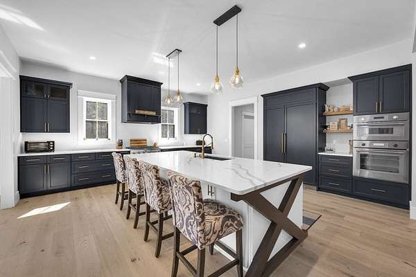 Luxury lake living on fully recreational South Pond, one of Central MA's most desirable lakes. This 5 BR, 4 1/2 BA custom designed home is 4 years young, bursting w/ high-end features across 3 stunning floors. The 1st flr exceeds every expectation with the kitchen of your dreams (10 ft ceilings, Thermador appliances, specialty Quartz counters, stunning cabinetry). Exquisite open concept dining & living areas (tray ceilings, custom molding/lighting, fireplace, built-ins). Large office, mudroom, & 1/2 BA complete the main level. The 2nd flr boasts 9 ft ceilings, family room, laundry room, 4 BRs & 3 full BAs including the expansive primary suite. The 3rd flr offers another full BA & provides flexibility for your home gym, music/art studio, rec room, 5th BR/guest suite, etc. Unfinished w/o basement for storage or finish for even more space. Both porches covered w/ standing seam roofs. 2 car garage. 14x24 shed. Ample parking. Dead end road. 30 mins to Worcester, 1hr to Boston.