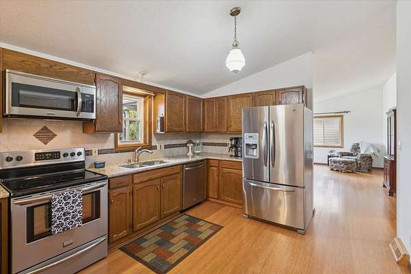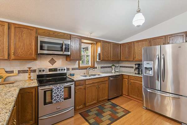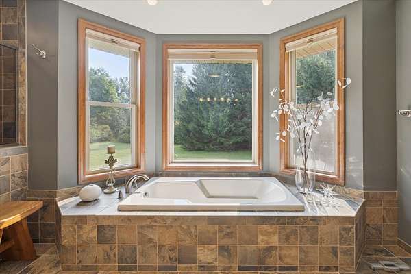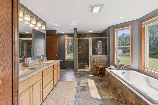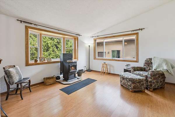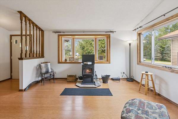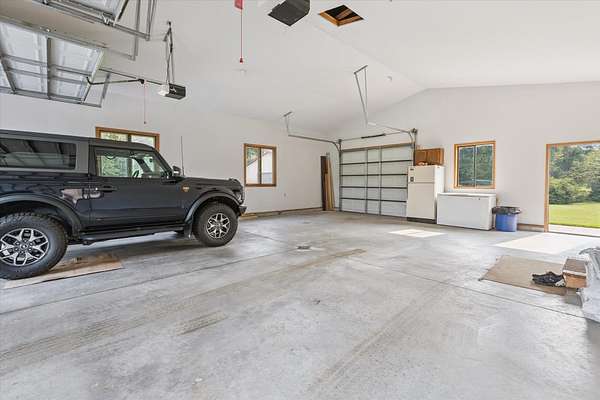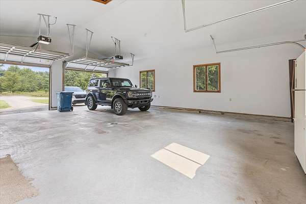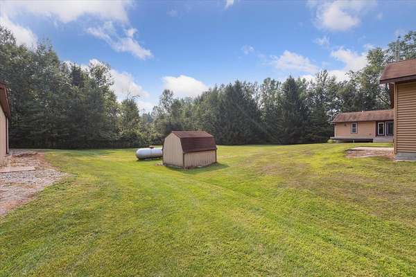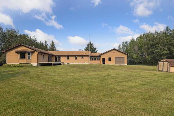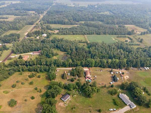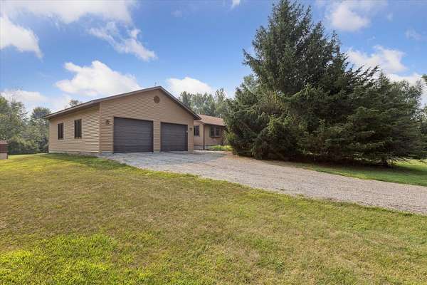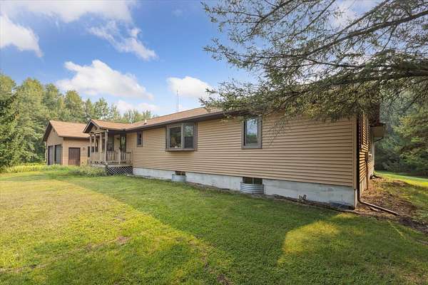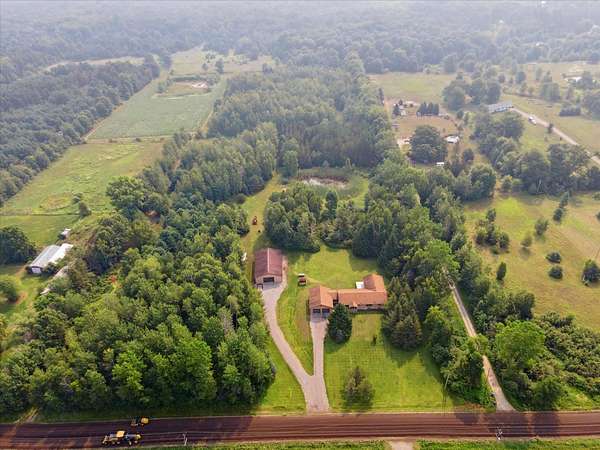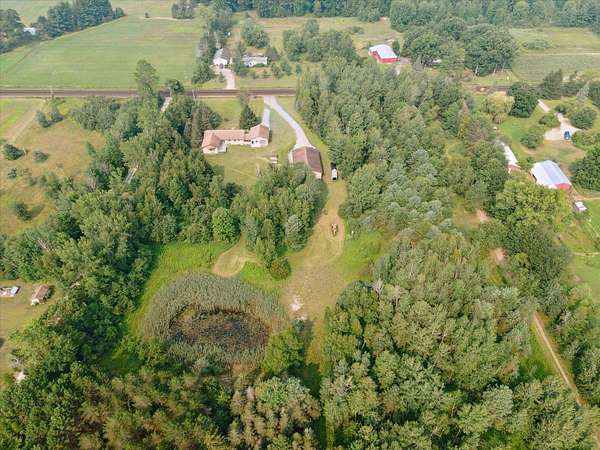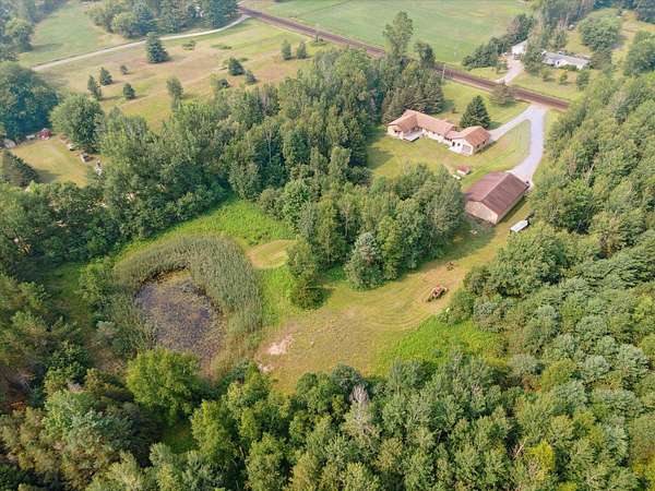 Noteworthy on Nine Mile! This Stick built 2280 sq feet of Phenomenal floorplan in this beauty which includes not 1, but 2 Master suites, one with an enormous walk in closet and an extraordinary, serene and expansive Master bathroom including a jet tub and beautifully tiled walk in shower just like your own spa. There is also another large bedroom and an office or could be a 4th bedroom if you add a closet! 3 Full bathrooms, A lovely and substantial kitchen with granite counters, pantry and a nice sized dining area. There is also a Living room with a pellet stove that can heat the entire house pretty well leaving the master a bit cooler for restful sleeping. The spacious Family room looks out over the deck at the vast back yard and the remainder of the 35.53 acres with approximately 8 foot deep pond and immense woods in the background. The Nice big mudroom/entryway leading from the attached 2.5 car with 8 foot tall doors and a 3rd door off the back is a added delight and the full unfinished basement is ready for you to finish and add extra living space! Plus the 40x64 Pole barn with it's own separate driveway, 220, 100amp electrical service, 12 foot tall walls and 10 foot high door. Pole barn is set up for in floor heating but no boiler system. The extra cabinet for over the oven/range is in the garage so it could easily be restored to it's original spot and you could lower the microwave if desired. The flooring in the kitchen, living room, dining room and family room is solid laminate bamboo that can be refinished. Don't forget the magnificent hunting you could have in your own backyard as you can see from the photos. There is a culvert in the back of the property for the kids to catch crawdads and certainly enough room to grow your own vegetables if desired.