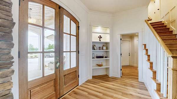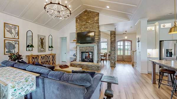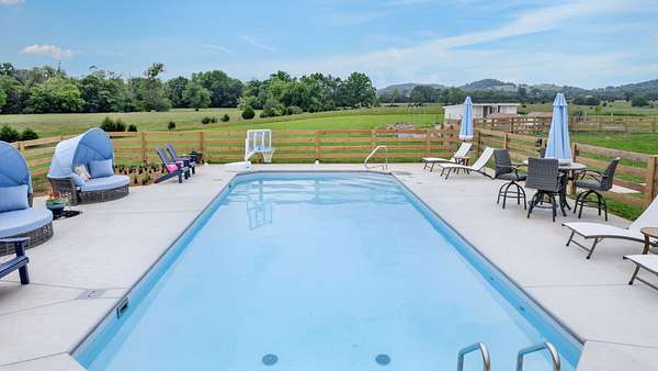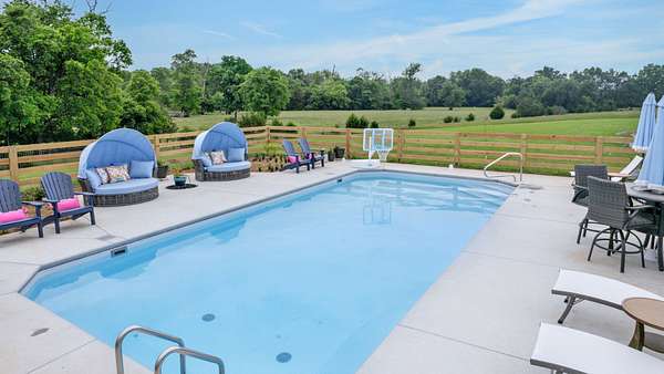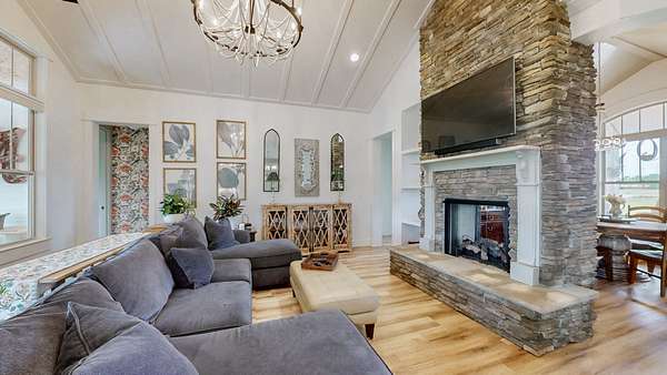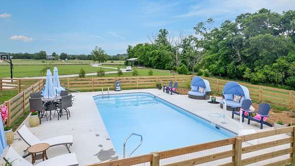 Custom built home on acreage with no detail overlooked. So many to share but to share a few that stand out; upgraded vaulted ceilings to focal walls, double sided fireplace from dining room to great room, motorized patio screens, inground pool, to designer wallpaper that accents a few rooms in the home. The owners retreat with your own doors to exit to your serene oasis to enjoy your morning coffee while watching the sunrise over the 6 plus acres around you. A unique gem that be sure to impress.