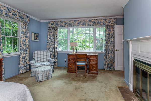 Exceptional opportunity in desirable South Kent. This four-bedroom Colonial offers beautiful views and a spacious, light-filled layout. The main level features an inviting kitchen with an island, seamlessly connected to the living and dining room anchored by a cozy fireplace. Two sets of French doors lead to a sunroom addition, perfect for relaxing or entertaining. The main level also includes a primary bedroom suite with its own fireplace, walk-in closet, and private bath. Upstairs, three generously sized bedrooms share a full bath. The property offers easily accessible and spacious storage options throughout. The exterior of the property offers mature landscaping with custom stone walls, a 2 car garage with area for workshop and walk up attic. Located under two hours from NYC with easy access to Metro-North RR, this is the perfect country retreat.