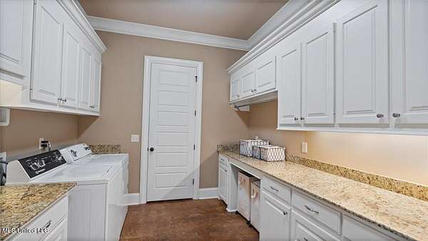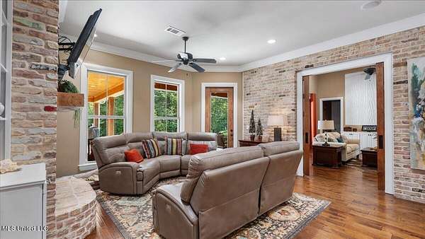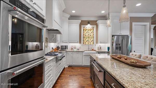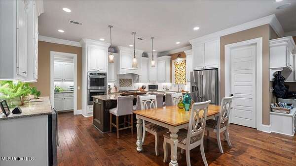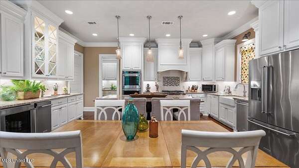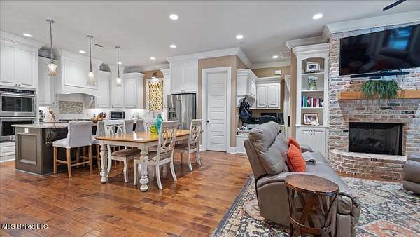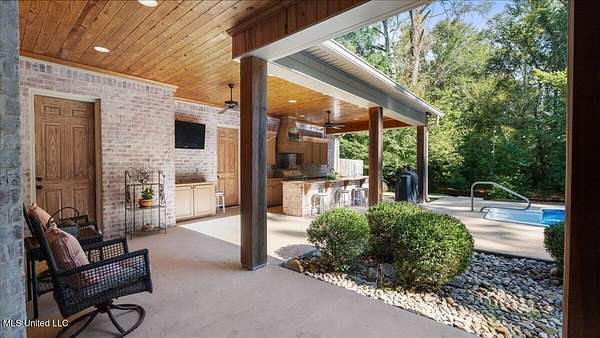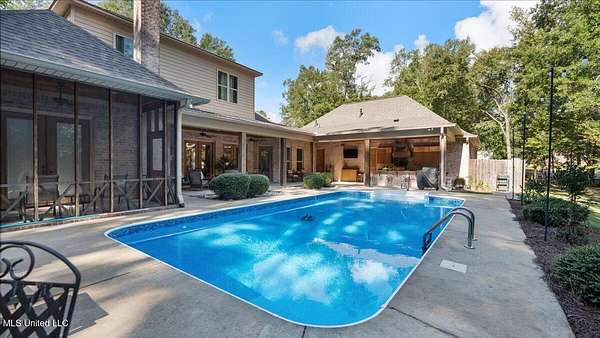 Set on a peaceful cul-de-sac and sprawling across 3.3 acres of mixed wooded and open terrain, this expansive two-story home offers comfort, space, and thoughtful design for those who appreciate both daily ease and elegant entertaining. With over 4200 square feet of interior living space, six spacious bedrooms, and four full bathrooms, there's room for everyone- including your four legged friends, who will delight in the indoor built-in dog kennel equipped with its own doggie door. Built in 2015 and updated with a new roof and pool liner in 2025, the home exudes enduring quality. From the start you'll notice a blend of casual functionality and refined finishes. Granite countertops grace every surface, while hardwood, and plush carpeting section the home into warm, welcoming interior zones. The kitchen serves as the heart of the home, seamlessly connecting to a keeping room where cozy mornings are spent. The high end appliances, huge island, and large walk-in pantry make entertaining a breeze. Nearby the formal dining room and living room provide areas for hosting guests, dinner parties, or quietly enjoying the pleasant hum of your own space. Two interior gas fireplaces offer ambient warmth while a wood burning fireplace on the covered back patio is perfect for visiting with friends, watching your favorite movie, or sporting event on the television on cooler evenings. The primary bedroom suite, located on the main level, is a sanctuary all on its own! Designed for comfort and convenience, it boasts a generous walk-in closet and a spa inspired en suite bath featuring a large walk-in shower. A screened private porch through French doors beckon your moments to read a book or unwind by the pool. A convenient second guest bedroom or a mother-in -law suite is also located downstairs as well. Upstairs, four additional bedrooms, and another full bathroom provide versatility. These rooms could also be used for a hobby room, playroom, or a home office. Step outside, and you'll discover the home's true calling card- the backyard. An outdoor kitchen overlooks the pool area, setting the stage for summer barbecues and twilight dinners. The home is surrounded by a private landscape of wooded areas, and also has a wide open field suited for chipping golf balls, playing football, bird watching or whatever your heart desires. For those with a penchant for preparedness, the home includes a tornado safe room offering peace of mind through every season. The three car garage, complete with additional storage spaces, keeps things organized, whether you are parking vehicles, storing gear, or tinkering with weekend projects. Located with-in the sought after Brandon School District and just minutes from community ammenities like the Brandon Ampitheater, Brandon High School, and Jackson-Medger Wiley Evers International Airport, this property feels refreshinly secluded without sacrificing essentiial access. If privacy, space, and purposeful design top your list, then this home invites you to turn the key and stay awhile.