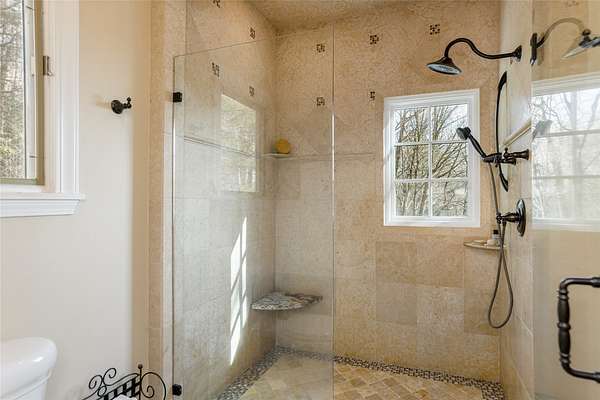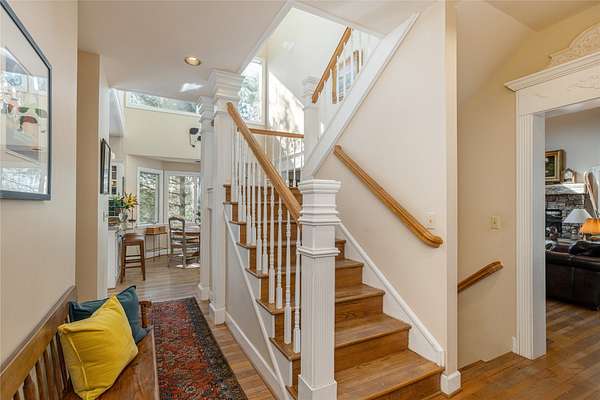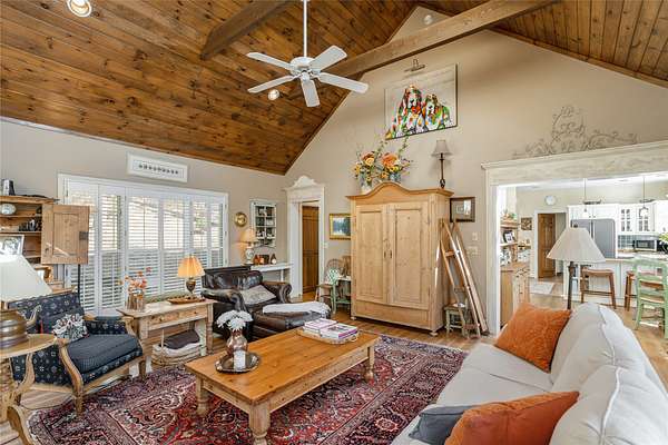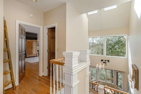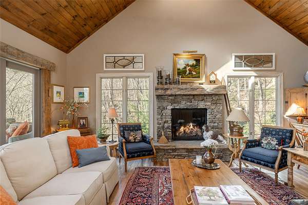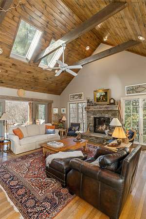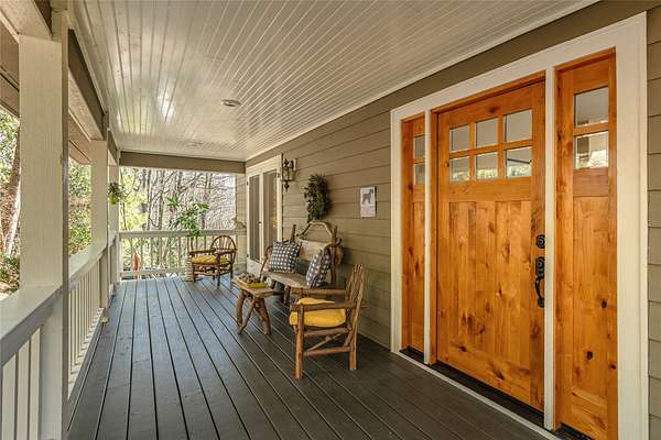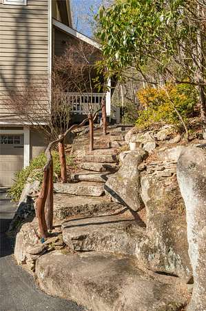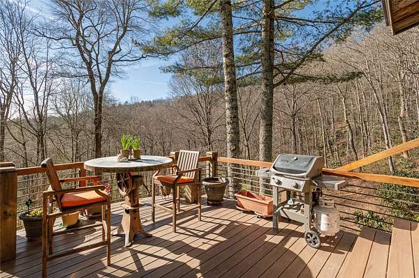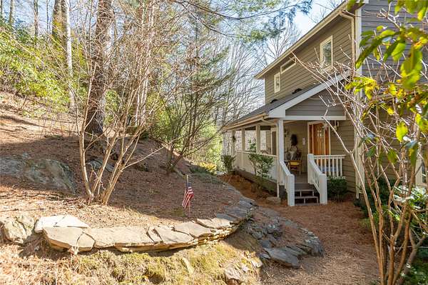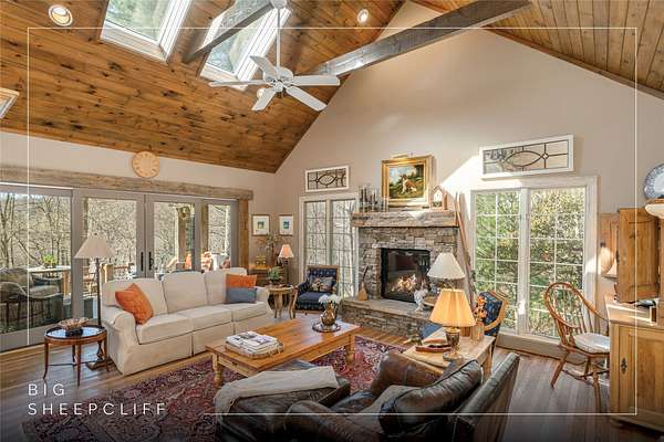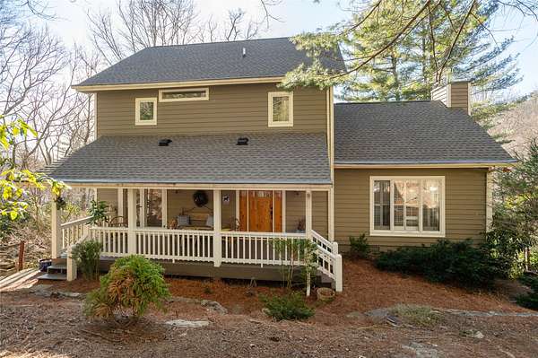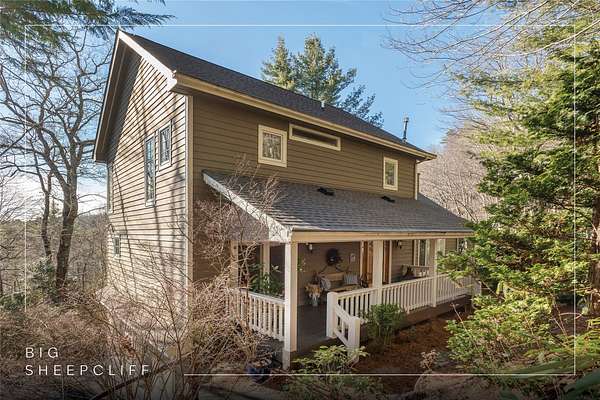 Welcome to a charming mountain retreat nestled within the coveted, gated community of Big Sheepcliff. Offered for the first time, this thoughtfully designed cottage sits on a private homesite and showcases timeless mountain character. Hardwood floors run through the interior, complemented by abundant natural light and inviting architectural details. The main level features a comfortable living room centered on a gas-log fireplace, with cathedral ceilings and skylights that enhance the open, airy feel. A cozy guest bedroom includes a full ensuite bathroom, which is also conveniently accessible from the hallway for visitors. The bright kitchen is both well-appointed and welcoming, with the laundry room conveniently located just adjacent. Outdoor living unfolds on the covered back porch and adjoining open deck, perfect for morning coffee, afternoon cocktails, and grilling, while taking in peaceful surroundings and distant peeks of Whiteside Mountain. An included view easement offers the opportunity to open up long-range ridge views. The upper level is devoted to a spacious and private primary suite, creating a peaceful end-of-day retreat. Additional features include a two-car garage, a gardening area, and significant upgrades, including a new roof and HVAC system installed in 2025, ensuring comfort and peace of mind. Ideally located just minutes from Cashiers, Big Sheepcliff offers community amenities including two stocked ponds, a shared meadow suitable for picnics and pets, and a mountaintop pavilion with sweeping views across Cashiers Valley. This property presents a rare opportunity for low-maintenance mountain living in one of the Plateau's most desirable gated communities, well-suited for a primary residence or a secondary retreat.