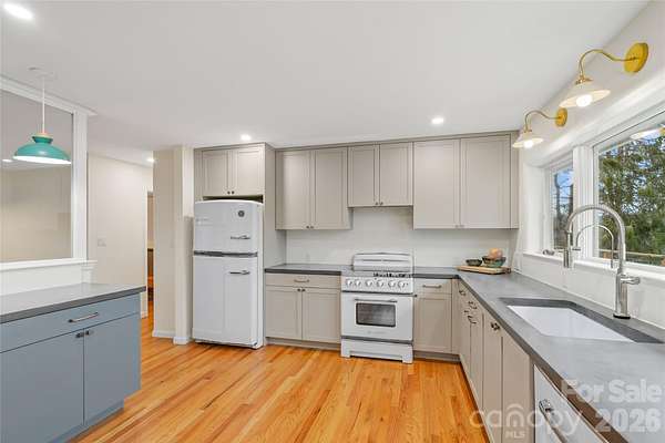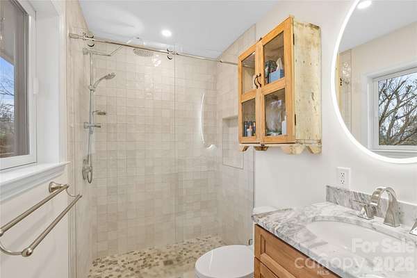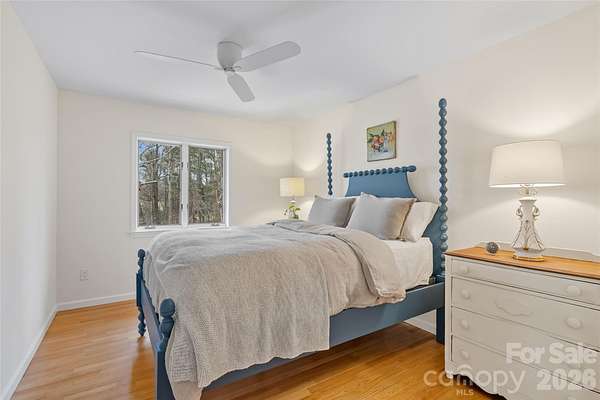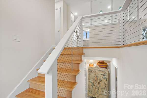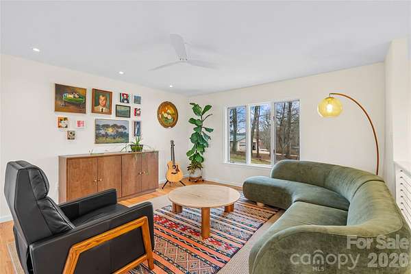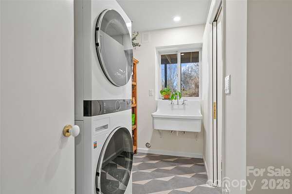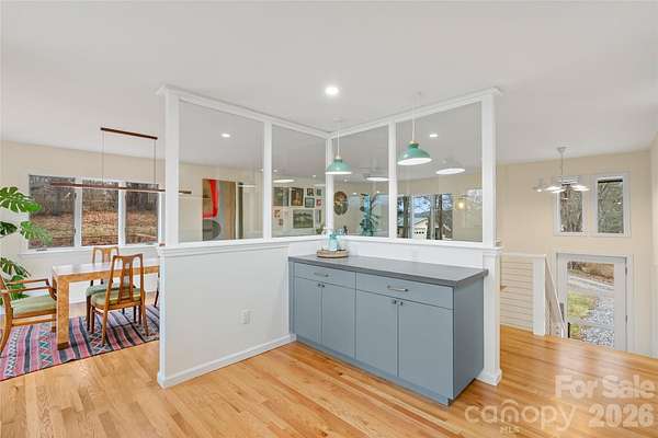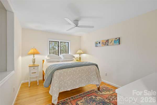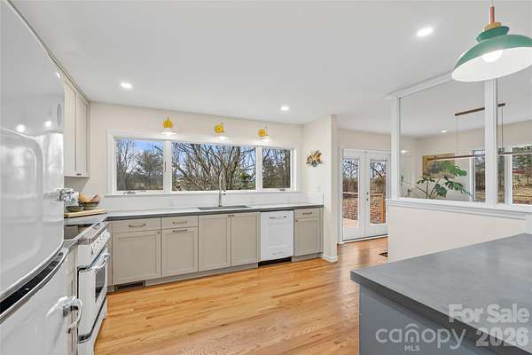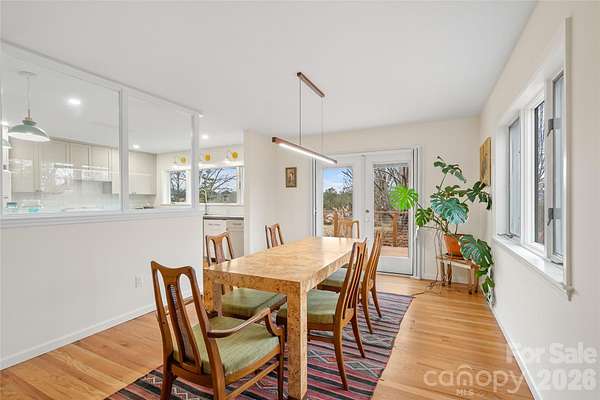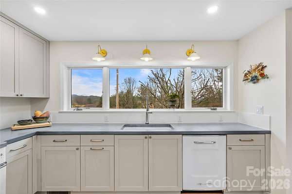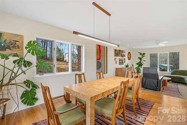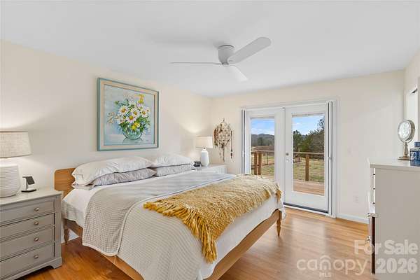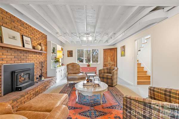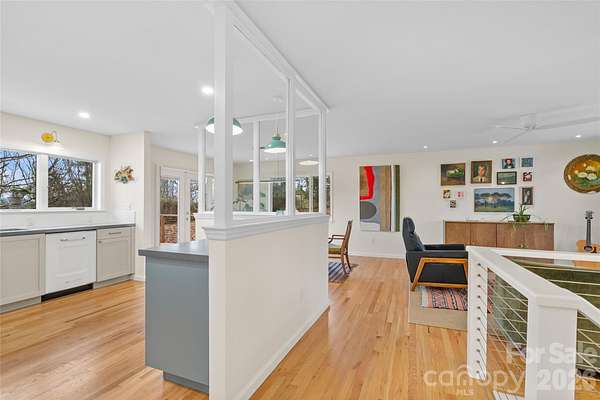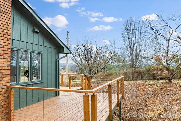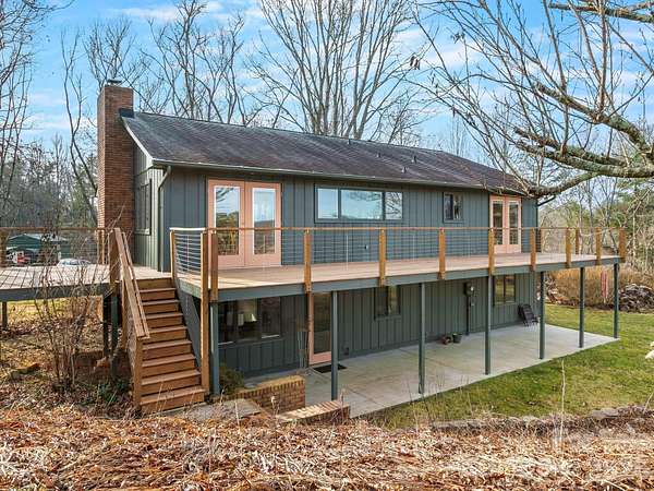 Perfect home and land retreat. Located exactly 22 minutes from River Arts District and 20 minutes, via beautiful country roads, to downtown Marshall. Rare combination of a beautiful "just right" house not overdone and certainly not underdone. 3 bedroom 2.5 bath completely renovated. Scandinavian inspired clean and bright with quality materials and finishes. The interior environment was purposefully designed to draw your focus to the spectacular view. Your plants will love the light. So many improvements this home is a pleasure to live in. Hard wood floors throughout main floor, large windows and french doors added both in the living area and primary bedroom to capture amazing views and provide immediate access to newly installed deck that spans the whole length of the house. All tile on lower level. Completely updated kitchen with custom cabinets, concrete counter tops. The view from the coffee bar looks out through the interior windows over the rest of the living area. All new retro inspired "Big Chill" appliances are just so cool. All new light fixtures and thoughtful accent lighting for art display throughout the spaces. All bathrooms redone with lovely tiles and stone and 1/2 bath added in laundry area on lower level. New wood burning insert added and provides so much warmth and ambiance in the fabulous art studio/library/family room on lower level. Whole house water filter provides clean delicious water right from the tap. Large utility room is so perfect for any projects or pets. One car garage is on lower level, and has interior access to utility room. The 17+ acres include woods, sunny pastures, creeks, and several natural springs. Easy access via private road at the top of the property or off old Turkey Creek Road at the bottom of the property. Great growing plateau just outside the back door. Stunning old growth trees anchor the view from the huge deck. There is so much to see and appreciate with this property. We would love to tell you more.