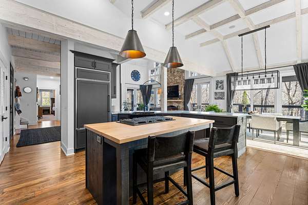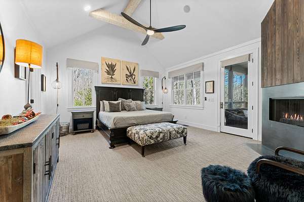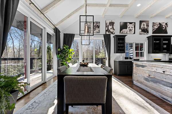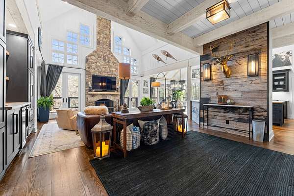 Just minutes from the heart of Cashiers, this beautifully reimagined 4-bedroom, 3.5-bath mountain retreat blends refined design, modern comfort, and serene natural surroundings. Set on 2.96 private acres in the gated community of Silver Slip Falls-bordering National Forest land with a tranquil creek in the backyard-this home offers an exceptional balance of privacy and convenience. Remodeled by Taylor'd Designs, the interior showcases cohesive style and elevated craftsmanship with unique reclaimed wood features throughout the main floor. The kitchen features updated cabinetry, hardware, and distinctive zinc countertops that bring character and sophistication to the space. The adjoining pantry continues the custom feel with new cabinetry and galvanized-metal-wrapped countertops, adding durability and mountain charm. The primary suite includes its own gas fireplace and direct access to a heated screened porch-an ideal year-round retreat. The primary bathroom was completely transformed, featuring a luxurious two-person walk-in shower with dual stations, updated vanity, and elegant tarnished brass finishes. The powder room makes a striking design statement with a floating concrete vanity and reclaimed barnwood walls elevated by unique hardware and fixtures. The main living room centers around a custom wet bar with floating shelves, antiqued glass, new cabinetry, a stone wood-burning fireplace, and French doors opening to the back deck overlooking wooded trails and seasonal mountain views. Upstairs, a versatile loft offers space for an office, media lounge, or reading nook. The lower level hosts three additional bedrooms (one with an ensuite bath), a full hall bathroom, and a spacious second living area perfect for guests or entertaining. Behind the scenes, the home is supported by modern updates that add long-term peace of mind, including a new roof, a whole-home generator, two high-efficiency gas furnaces, and an encapsulated crawl space with dehumidification. Integrated humidity control-including two HVAC-connected dehumidifiers-keeps the interior comfortable in all seasons. Offering elevated design, thoughtful upgrades, and the tranquility of a private mountain setting, this Silver Slip Falls home is a rare opportunity minutes from Cashiers' dining, shopping, and outdoor adventures.