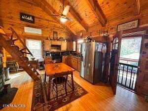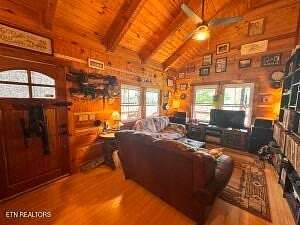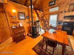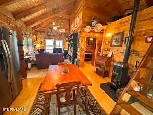 East TN Log Home nestled in the Appalachian Mountains with three sides of the property joining The Cherokee National Forest! Privacy and Tranquility abounds at this gated mountain retreat with beautiful mountain views and ''room to roam'' on 12.57 acres! Step inside this well built, green energy efficient Log Home into an open floor plan featuring 20' Cathedral ceilings throughout the home with beautiful tongue and groove ceilings and hand hued wooden beams! A loft overlooks the kitchen and dining area providing an area for additional storage with a custom crafted ladder for easy access. A warm and quaint 98% efficient wood burning stove adds comfort and ambiance to this TN mountain home while a 1.5 ton mini-split is available if needed. Home is wired with an automatic throw over switch should new homeowner choose to install solar panels. The kitchen features granite countertops, custom cabinetry, and nature views from every window! Sustainable bamboo flooring is throughout the home with tile flooring in the bathroom. New high efficiency windows were installed in 2025. Most of the furniture (excluding family room furniture) can remain including a massive bookcase which pivots to reveal a secret walk-in pantry! The great room is open to the kitchen/dining area and is positioned to take advantage of the gorgeous sunsets! With so much nature around, it beckons you to come outside and relax on the covered wrap around porch where you can sit back and enjoy the environment and the birds from the rocking chairs and porch swing or relax in the new (2024) 8 person hot tub tucked off to the side of the porch as you take in the most amazing sunsets East TN has to offer! The property has raised vegetable gardens, established perennial herbs, and an orchard which includes 6 apple trees, 3 blueberry bushes, 3 raspberry bushes, blackberry bushes, 10 grape vines, a fig tree, tart cherry tree, ever bearing strawberries, asparagus and 4 prize rose bushes are right off the front porch! Owner says the newer lawn mower can also remain and his tractor with box blade is negotiable. Out back, you will find a 14x20 workshop thoughtfully built with dimensional lumber for crafts and hobbies. Maybe transform this building into a tiny home?? This mountain home has a deep water well which the owner states is fantastic! The possibility exists for another home to be built on the property that would be located just up the hill from the existing home which has the most breathtaking mountain views! The POA annual dues provide maintenance for the private roads, ditches, and mowing throughout the year. Although you have the feeling of living ''off of the grid,'' you are just 15 minutes to the Hartford exit and another 5 minutes to Newport for shopping and dining. The Pigeon River and Big Creek are minutes from this property where you can take advantage of river rafting in the mountains! You are just minutes from the Appalachian Trail, Max Patch, and Hot Springs NC. You are less than an hour away from Dollywood, Pigeon Forge, Gatlinburg, and Douglas Lake for entertainment, shopping, and fine dining. Hunting is permissible in the Cherokee National Forest adjacent to this property. A large community pond is close by (not on this property) where the owner fishes and has caught large bass and bluegills. This mountain oasis awaits you! Come on Home to Tennessee! This community is gated for your privacy and convenience and has a property owners association (POA) to upkeep and protect your investment. All information is deemed reliable; however, buyers and buyer's agents are advised to verify all information as it was gathered from public records and owner.