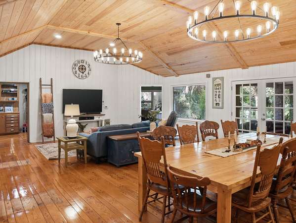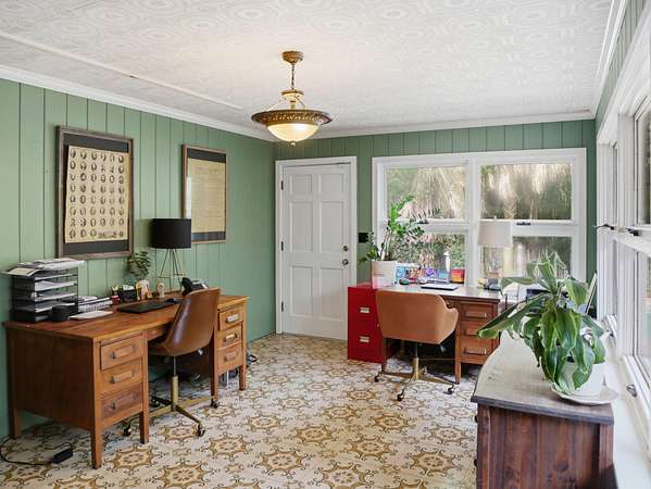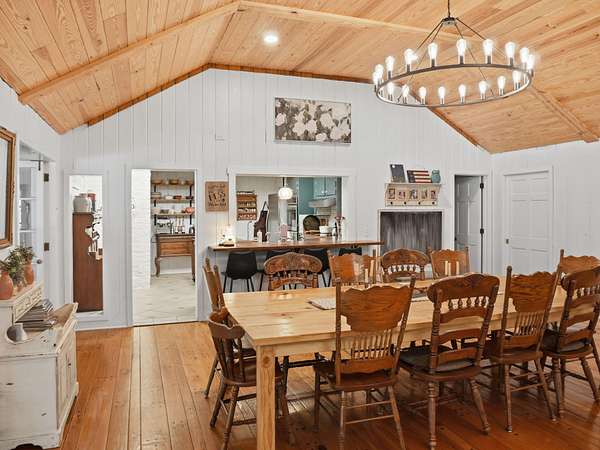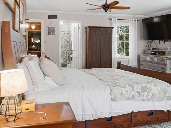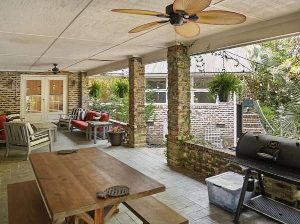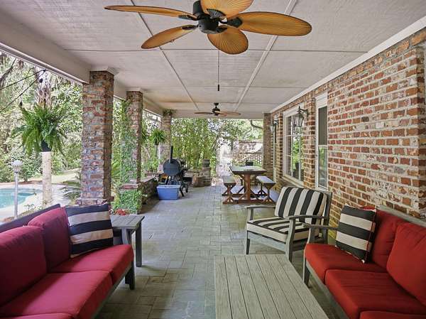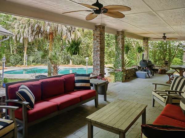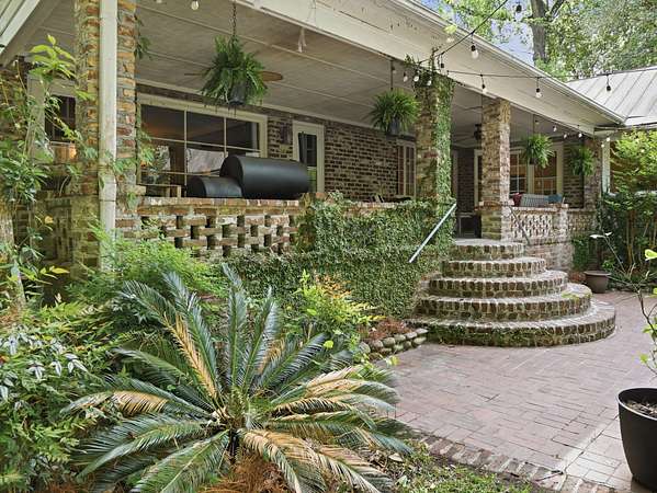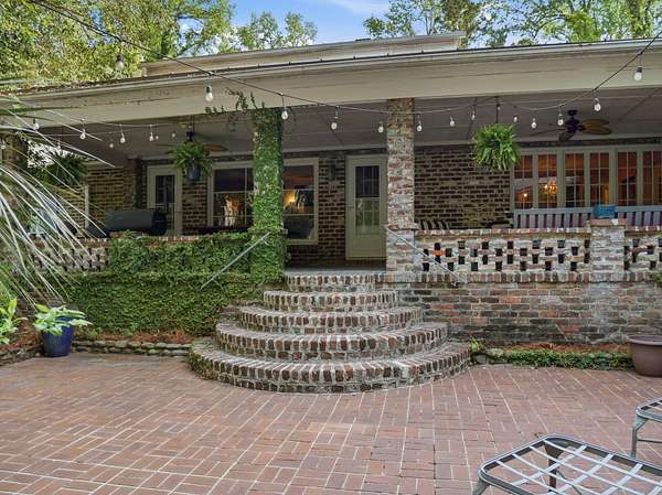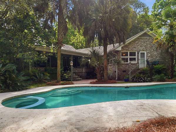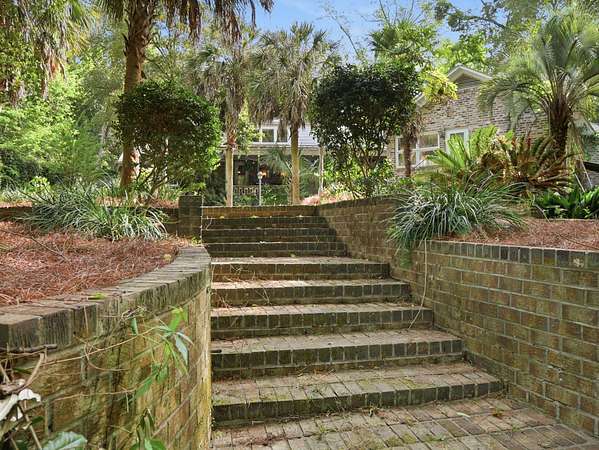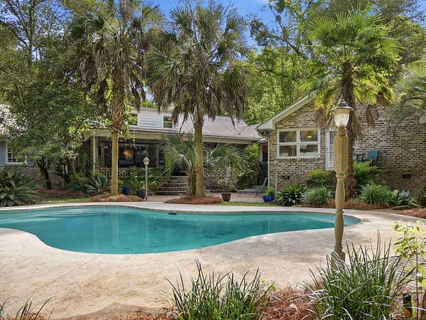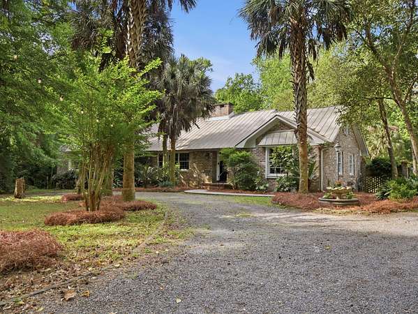 Welcome to a rare opportunity to own a private estate on the largest lot in the area, at 4+ acres in the highly sought-after historic district of Summerville, SC. Nestled among mature trees and natural landscaping, this property offers the perfect blend of privacy, space, and classic Southern charm--all just minutes from downtown Summerville, shopping, dining, and top-rated schools. A scenic driveway leads you across a tranquil creek and into a peaceful, wooded setting where this stately brick home awaits. Inside, you'll find a spacious floor plan featuring a grand foyer, private home office, and a large living room with views of the covered patio, in-ground pool, and expansive backyard. The updated kitchen offers modern appliances, ample cabinet space, and a pantry, flowing seamlessly into multiple living and entertaining areas, including a formal dining room with built-ins, a generous family room, and an incredible office overlooking the pool. Enjoy playing in the Music room, which has an hidden room though the floor- perfect for a wine cellar. This home has lots of storage throughout! The main-level primary suite provides convenience and comfort with a private bath, while two additional bedrooms and a shared bath are thoughtfully positioned on the opposite side of the home. Upstairs includes two bedrooms, full bathroom, and flexible bonus space--ideal for a home office, playroom, or craft room--with walk-in storage. Step outside and enjoy your own backyard retreat featuring a covered patio, pool, mature oak trees, azaleas, camellias, and lush landscaping. Additional features include two detached two-car garages (one with an unfinished room above) great potential for an ADU, iron gates, brick accents, fountains, and a dedicated gardening area. If you're searching for acreage, privacy, and a custom home in Summerville's historic district, this one-of-a-kind property is a must-see. Schedule your private tour today.