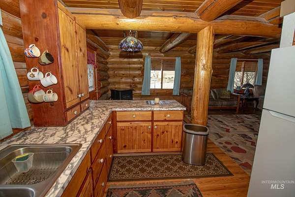 Enjoy mountain and sunset views from the covered wraparound deck of this well-maintained 1996 log home on approximately 4.596 acres featuring a detached garage with additional living space above approx. 338 sq ft with one bedroom, one bathroom, mini-split heating and cooling, and a separate hot water heater. Located on a quiet dead-end road about 15 minutes (approx. 8 miles) from Kooskia and the Clearwater River. This property offers a peaceful rural setting while embracing the North Idaho outdoor lifestyle. The home features a functional layout with the primary bedroom and full bathroom on the main level and two bedrooms and one bathroom upstairs. Recent improvements include a new roof (2022), pellet stove (2021), and a newer addition completed in 2023 with mini split heating and cooling. The property features gently sloping ground, a shop/RV barn, carport, wood storage shed, fenced yard and garden area, and a 13KW push-button start propane generator. Outdoor recreation is nearby with access to the Clearwater River and surrounding National Forest lands. ATV/UTV riders can reach National Forest trail systems approx. 6-7 miles away. No HOA. Room for animals or hobbies while still being a short drive to town.