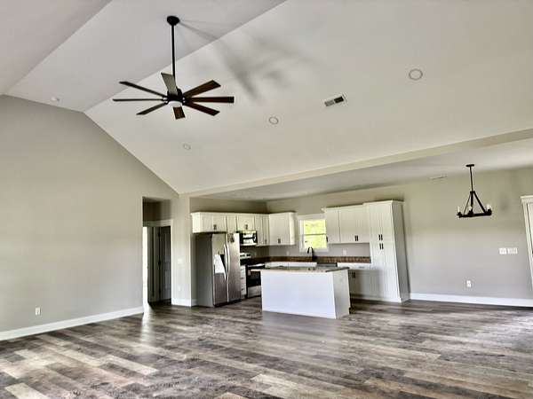 Everyone's Dream of 5 Gorgeous level acres! This brand new beautiful Home is a lovely moss green just waiting to make your Family HAPPY! ! Away from the traffic in the County! Make this your DREAM MINI FARM! Come grow your Family and your Garden. Homes features 3 Zoned Bedrooms with 2 full Baths and big open high ceiling in the Living Room. Lovely Granite Kitchen Counter tops with all Stainless Appliances and an extra big Marble Shower(with a bench for 2) plus marble Bath Rooms Flooring. Bring your horses and Critter's with room to park your truck and trailer >Easy Restrictions with No HOA. Your welcome to build Barn or your Shop. The Outdoor Living is wonderful with dreamy huge Rocking Chair Front and Back Porches. Also big beautiful mature trees but yet plenty of room for your Gardens.