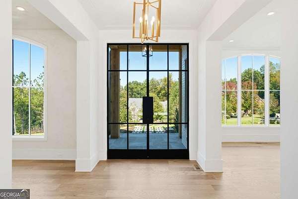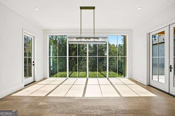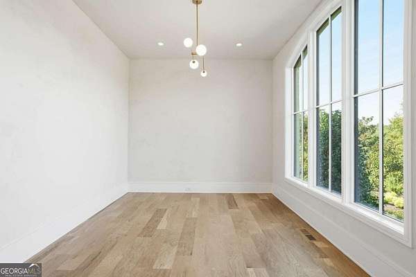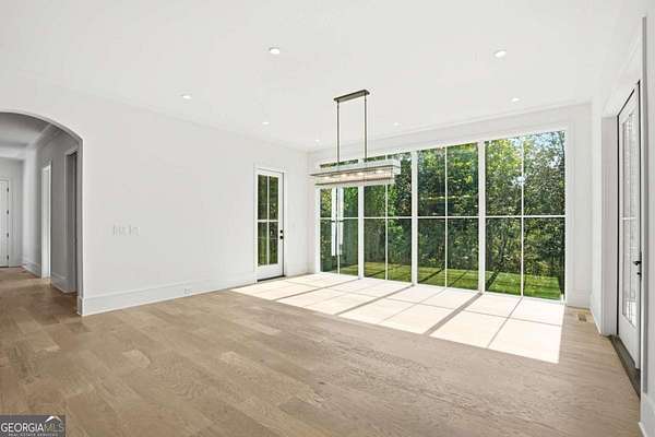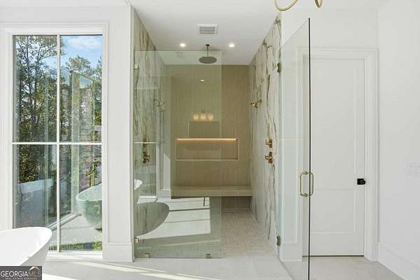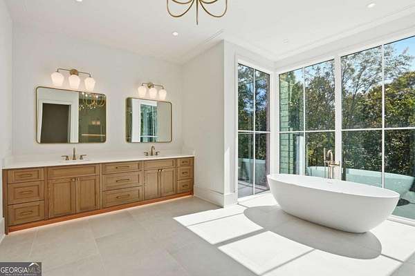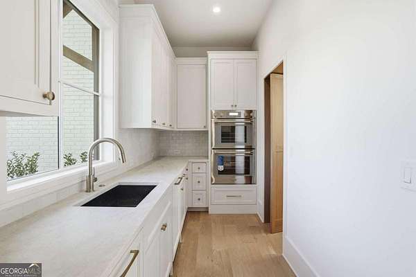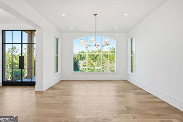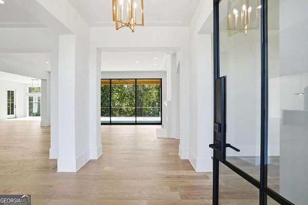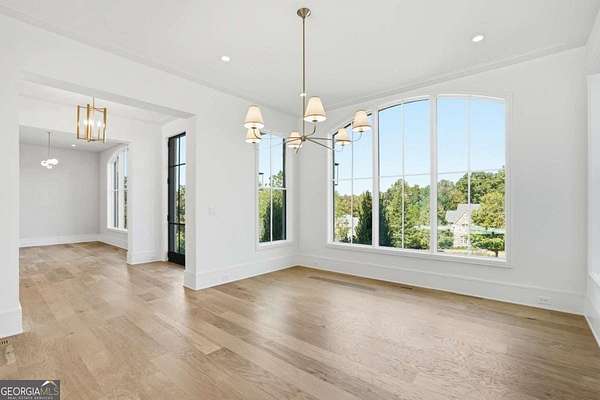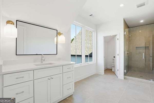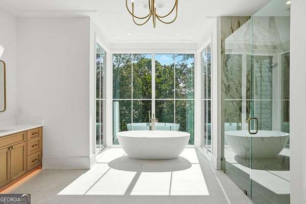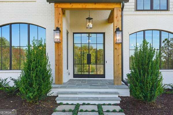 Introducing a stunning new construction by Gable Homes, located in Roswell's prestigious Litchfield Hundred community. This modern craftsman residence combines timeless design with exceptional craftmanship on a private, wooded lot with a fully landscaped yard and spacious 3-car garage. Inside, rich site-finished hardwood floors, vaulted wood-paneled ceilings and floor-to-ceiling windows define the main living spaces. Custom cabinetry is featured throughout, and energy-efficient windows fill the home with natural light. The oversized main-level primary suite offers a serene seating area, a spacious California Closets system, and a spa-like bath with soaking tub and walk-in shower. The chef's kitchen impresses with Thermador appliances, custom-paneled cabinetry, and an oversized island that flows effortlessly into open living and dining areas. A hidden scullery with secondary prep and storage spaces adds both function and discretion-perfect for entertaining with ease. Upstairs, each bedroom includes ample storage with California Closet systems and their own private en-suite, and convenient access to a second laundry room. Additional highlights include tankless water heaters, dual laundries, and a seamless blend of luxury and practicality. Ideally situated near Milton, Crabapple, Alpharetta, and top-rated schools, this home offers refined living in a tranquil, connected setting. Don't miss your chance to own this beautifully crated home where luxury meets lifestyle.