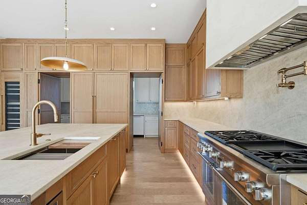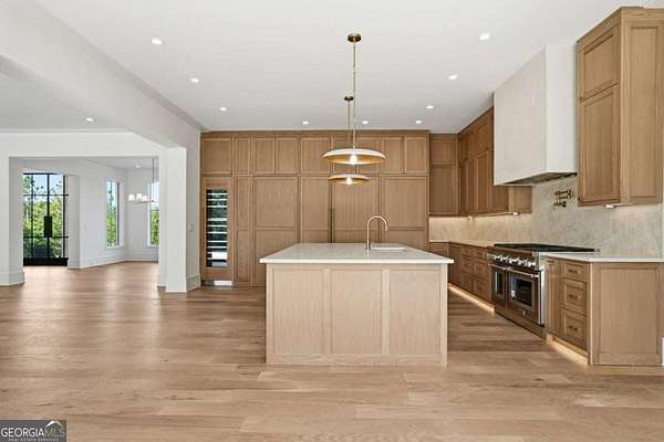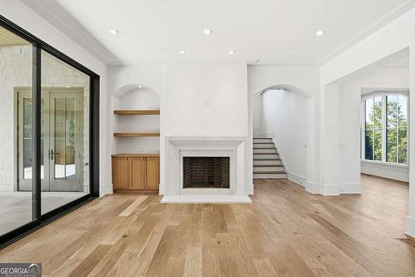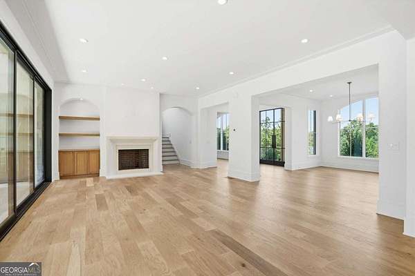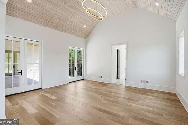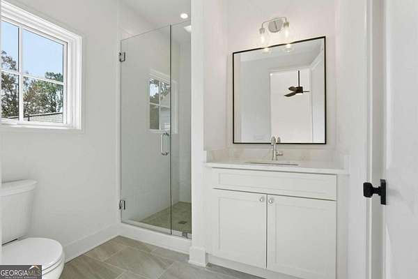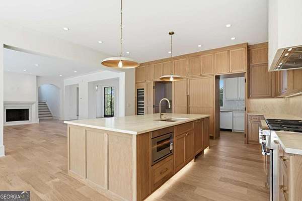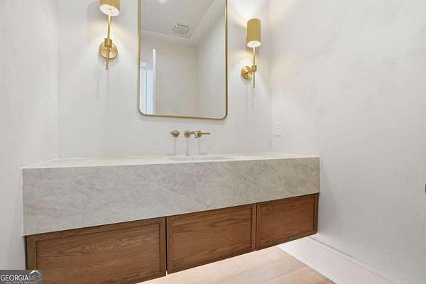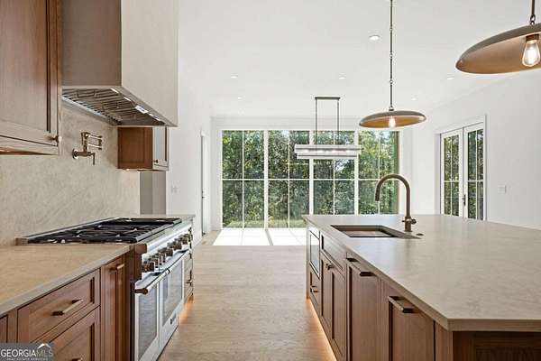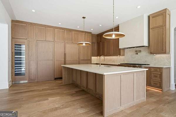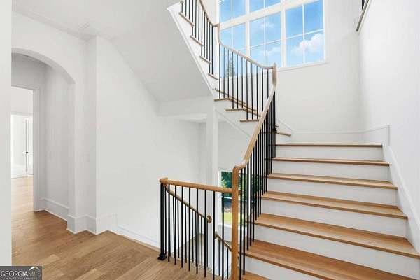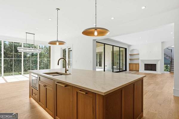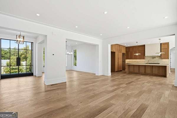 Introducing a stunning new construction by Gable Homes, located in Roswell's prestigious Litchfield Hundred community. This modern craftsman residence combines timeless design with exceptional craftmanship on a private, wooded lot with a fully landscaped yard and spacious 3-car garage. Inside, rich site-finished hardwood floors, vaulted wood-paneled ceilings and floor-to-ceiling windows define the main living spaces. Custom cabinetry is featured throughout, and energy-efficient windows fill the home with natural light. The oversized main-level primary suite offers a serene seating area, a spacious California Closets system, and a spa-like bath with soaking tub and walk-in shower. The chef's kitchen impresses with Thermador appliances, custom-paneled cabinetry, and an oversized island that flows effortlessly into open living and dining areas. A hidden scullery with secondary prep and storage spaces adds both function and discretion-perfect for entertaining with ease. Upstairs, each bedroom includes ample storage with California Closet systems and their own private en-suite, and convenient access to a second laundry room. Additional highlights include tankless water heaters, dual laundries, and a seamless blend of luxury and practicality. Ideally situated near Milton, Crabapple, Alpharetta, and top-rated schools, this home offers refined living in a tranquil, connected setting. Don't miss your chance to own this beautifully crated home where luxury meets lifestyle.