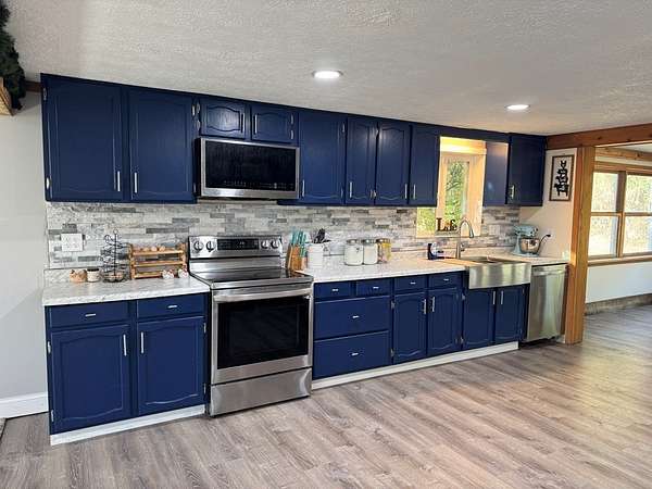 Beautiful property offering one-level living and a long list of updates throughout. The home features recently remodeled kitchen with stone backsplash, appliances, updated baths, a 2024 furnace and thermostat, and the roof was replaced in 2019. Enjoy the spacious layout & large rooms, a jetted tub, public water and sewer, and a fully fenced yard and pasture. The outdoor amenities include a pond, fruit trees, berry bushes, and a play set. Ideal for a hobby farm, the property offers an oversized 2-car attached garage along with several outbuildings, including a 3-stall barn with chicken coop, a 42 x 24 detached 3-car garage with electric and water, a small 1BR/1BA apartment with a 1-car garage that needs rehab, a 24 x 14 garage with electric, and a 32 x 22 utility building with a wood-burner in the workroom. Additional frontage on State Route 250 provides excellent access and visibility. Back of property is in Clearcreek Twp and not in village. Baily Lakes has 2 new parks coming soon.