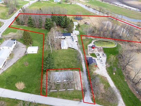 Beautiful property offering one-level living and a long list of updates throughout. The home features recently remodeled kitchen with stone backsplash, appliances, updated baths, a 2024 furnace and thermostat, and the roof was replaced in 2019. Enjoy the spacious layout & large rooms, a jetted tub, public water and sewer, and a fully fenced yard and pasture. The outdoor amenities include a pond, fruit trees, berry bushes, and a play set. Ideal for a hobby farm, the Homestead offers an oversized 2-car attached garage along with several outbuildings, including a 3-stall barn with chicken coop, a 42 x 24 detached 3-car garage with electric and water, a small 1BR/1BA apartment with a 1-car garage, a 24 x 14 garage with electric, and a 32 x 22 utility building with a wood-burner in the workroom. Additional frontage on State Route 250 provides excellent access and visibility. Back of property is in Clearcreek Twp and not in village.