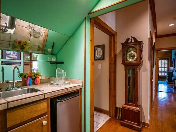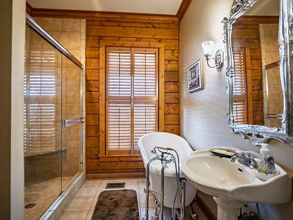 - Blinds, Ceiling Fan(s), Drapes, Fireplace-Gas, Fireplace-Wood, French Doors, Jetted Tub, Sunken Tub, Walk-In Closet(s), Wet Bar, Workshop