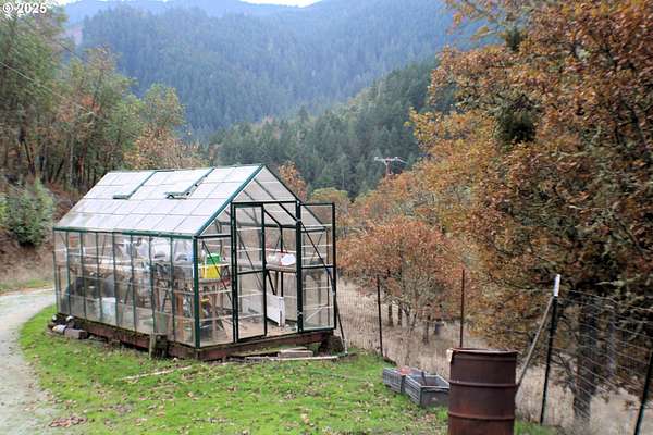 Perched atop the mountain, this private 40.1-acre retreat offers peace, seclusion, and stunning views. The 3-bedroom, 2-bath, 1,620 sq. ft. home blends comfort and functionality with laminate flooring and vaulted ceilings throughout. The spacious primary suite features an attached office, walk-in closet, walk-in shower, and a relaxing soaking tub. The open kitchen includes a breakfast bar, center island, and abundant cabinet and counter space, while the separate laundry room adds convenience to everyday living. Enjoy outdoor living year-round on the large covered back patio-complete with a wood stove and hot tub-or take in the panoramic scenery from the spacious covered front deck. Practical amenities include city water, a septic system, fenced yard area, raised garden beds, greenhouse, tool shed, and RV parking located midway up the long, graveled driveway. The oversized detached 3-car garage offers ample space for vehicles, storage, or a workshop. This exceptional property combines comfort, privacy, and mountain living at its best. Call to schedule your private showing today! NOT A DRIVE-BY.