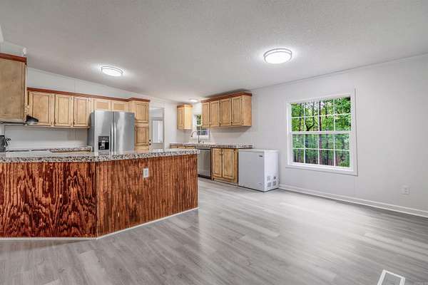 Looking to escape from city living to country living. This is your chance with this beautiful 3 bedroom / 2 bath Manufactured home sitting on 3 acres. This home offers you recent updates such as fresh paint throughout, new vinyl flooring throughout, new tile walk-in shower in the master bedroom, large bedrooms, large storage shed out back, Open Kitchen/Dining, updated countertops, large living room, permanent foundation, NEW ROOF, NEW HVAC, NEW BACK PORCH with Rod Iron & Wood and COVERED Front Porch. You can sit out back to enjoy breeze and listen to nature. No restrictions. You can have a hobby farm or garden. This home is within 10 min from shopping, grocery stores and anything you need from downtown Cabot and 10 min to access the freeway.