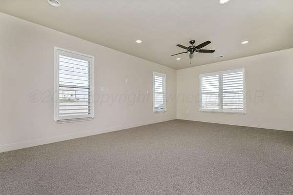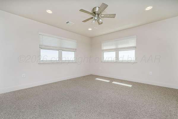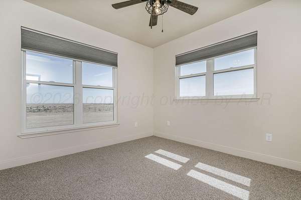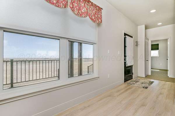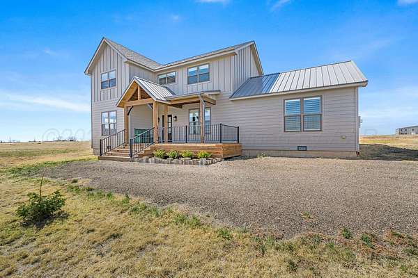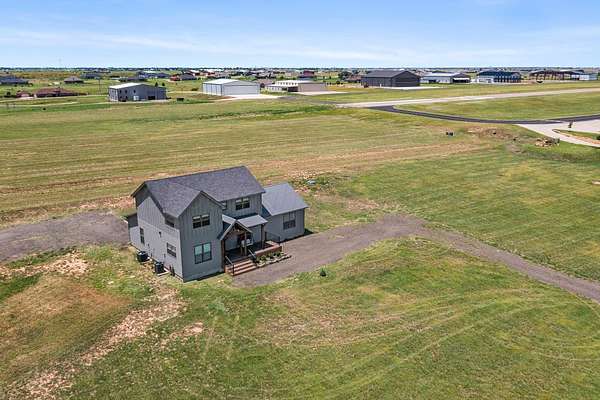 Exceptional country residence currently available in an exclusive gated enclave near Amarillo and Canyon. This beautifully designed property offers a perfect blend of rural privacy and urban convenience, situated on deed-restricted grounds that ensure maintained standards and an upscale lifestyle. A standout feature for aviation enthusiasts is the home's location adjacent to a privately owned 6,000-foot runway. The residence itself offers a versatile 3-4 bedroom floor plan. The upstairs area is particularly flexible, with the potential to serve as a primary suite featuring a game room, wet bar, and stackable laundry connections. Residents can enjoy breathtaking scenic views and access to outdoor activities such as hiking and fishing.