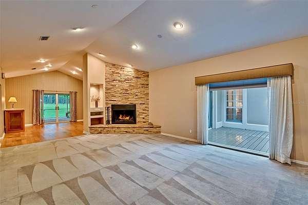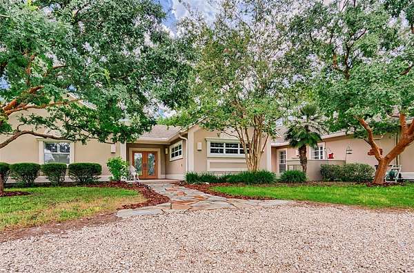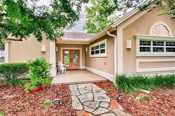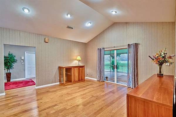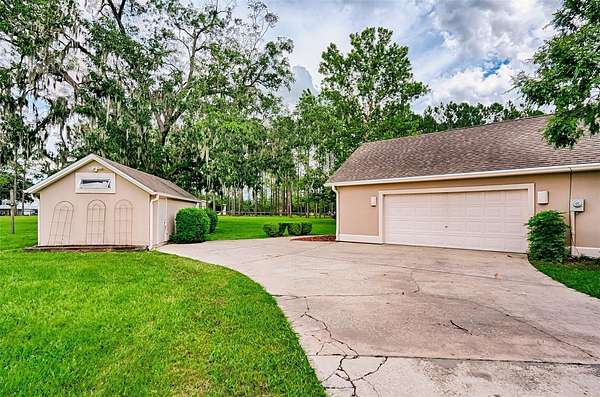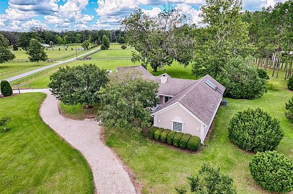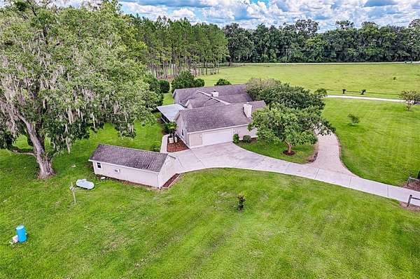 Under contract-accepting backup offers. One or more photo(s) has been virtually staged. This spacious 4-bedroom, 3-bathroom home spans 2,920 sq ft on 5.48 acres in the heart of Alachua in Brandon Estates. A landscaped entry with glass French doors open to a vaulted foyer filled with natural light. Just off the entry, a private bedroom with a gas-burning fireplace and en-suite bath makes a wonderful guest suite or home office. To the right, the formal dining room connects seamlessly to a 14' x 38' screened porch with pocketing sliding doors--ideal for entertaining or relaxing while overlooking the peaceful backyard. The living room features a wood-burning fireplace and a floor-to-ceiling window with views of the front deck. The kitchen includes a eat-in area and sliding doors leading to the front deck--perfect for morning coffee or casual dining. The owner's suite offers vaulted ceilings, dual walk-in closets, and a spa-like bath with a jacuzzi tub and oversized walk-in shower. Two additional bedrooms share a hall bath. A 12' x 30' detached outbuilding provides a finished, air-conditioned space with built-in benches and racks--ideal for a workshop, hobby area or additional storage. Additional highlights include: Fully fenced property with invisible pet fencing, Oversized two-car garage with EV charging station, Concrete driveway with pebbled circular drive, 15KW generator with transfer switch and owned propane tank. Enjoy the peace of being outside city limits while staying just minutes from the library, post office, fire station, and Publix. Ideally located near Hal Brady Recreation Complex, Legacy Park, San Felasco Hammock State Park, and Downtown Alachua's Historic District, this property offers the best of both worlds--quiet country living with easy access to Gainesville, UF, Shands, and HCA Florida.