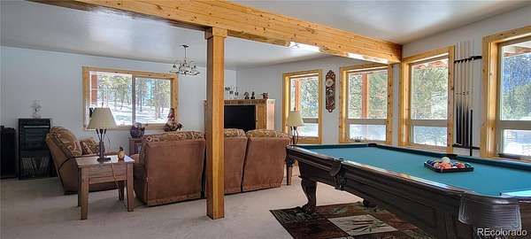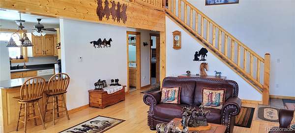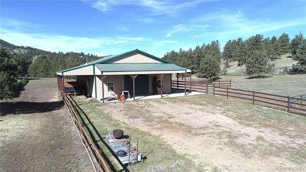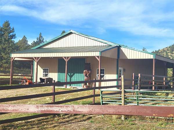 Take a look at the Rockin Horse Ranch, located near the end of the road in one of Guffey's most friendly subdivisions. Featuring a 3486 square foot, 5-bedroom custom home and a 2160 square foot, 6-stall horse barn with fully insulated workshop. This fully fenced wooded property with a stream is perfect for horses. Add access to the stocked community fishing pond and the friendly neighborhood and you will feel right at home. The Rockin Horse Ranch sits on 38 acres in the Peak and Ponds Subdivision, which features 6 acres of common area including a stocked fishing pond. The property is mostly wooded and has a small stream running along its front edge. The 5-bedroom custom home features alder cabinets, hickory flooring, and T&G ceilings for the complete mountain home feel. The full floor to ceiling wall of windows providing amazing views as well as the southern exposure to take advantage of the winter solar gain to reduce heating costs. This large home has an excellent layout for a large family or just space for entertaining many guests. The upper level features a large loft for entertaining and relaxing and a well sized bedroom with private deck. The main level consists of the main living floor with kitchen, dining area, 2 bedrooms, living room and just out the door is the wrap around deck for your outdoor living needs. The large walk-out basement allows for guest privacy as well as easy access to the rest of the property. The 2160 square foot barn features 6 elegant horse stalls with ample storage for feed above the stalls. Nearly half of the barn has been developed into a fully insulated workshop with ample space for all your projects and 220 watt electric to power your tools. Both sides of the barn have covered space for storage of equipment or additional animal space.