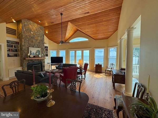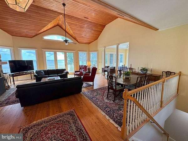 Only one hour from Richmond, this unique, private 8.0-acre property boasts 275 feet of river frontage. The property consists of an elegant, but casual architecturally designed home on an 8-acre lot, the adjacent 8.6-acre lot zoned for a single-family residence is also for sale. The property offers spectacular views of the river. Looking southeast, the view exceeds six miles. The home consists of two levels, the upper level offers a living room, primary bedroom and adjacent bath, gourmet kitchen, laundry room/pantry and a three-car garage. The lower level consists of a Jack and Jill bathroom, two bedrooms and a living room. The living room could be used as a 4th bedroom. Adjacent to the living room is an office. The upper-level living room features a wood burning fireplace with a gas starter,16-foot vaulted ceilings with cypress paneling, heart of pine floors, Tuscan columns and custom cabinetry. Adjacent to the living room is a half bath/powder room. The primary bedroom has 10-foot ceilings, a wood-burning fireplace with a gas starter, a large walk-in closet plus an adjacent bath with soaking tub. The kitchen features a gas stove, double ovens, stainless steel appliances, eat-at island, breakfast nook and 10-foot ceilings. All kitchen appliances were purchased in the last two years. Adjacent to the kitchen is a spacious pantry, laundry room and three car garage.