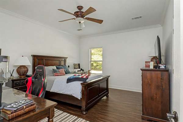 Welcome to this stunning and meticulously maintained home built in 2008, offering thoughtful updates and exceptional comfort. Recent improvements include new flooring, fresh interior paint, new appliances, newer roof, new water heater, and two HVAC units serviced twice per year. This spacious 4-bedroom, 3-bath residence features large bedrooms, including a luxurious primary suite with a huge walk-in closet, walk-in shower, and an impressive copper soaking tub. Designed for both everyday living and entertaining, the home offers an open living area with tall ceilings, formal dining, and a well-appointed kitchen with island, breakfast area, and sitting space overlooking the living area. A bonus room provides flexibility for a game room, media room, or home office. Outside, enjoy beautifully maintained landscaping, a large fenced backyard, and the added benefit of an adjoining 1.24-acre lot offering privacy and space for future expansion--ideal for a shop or additional improvements. A rare opportunity for space, style, and upgrades--move-in ready and built to impress. Call today for more information!