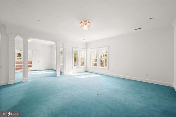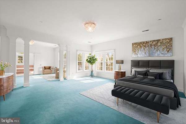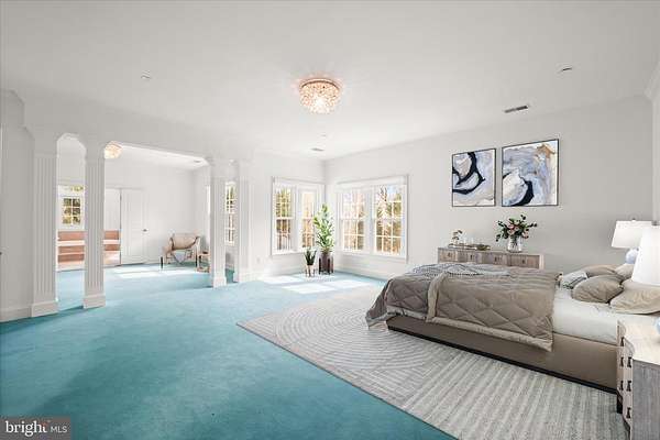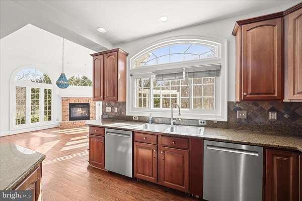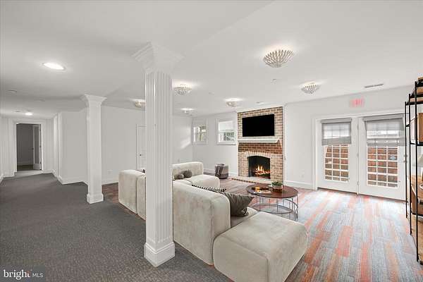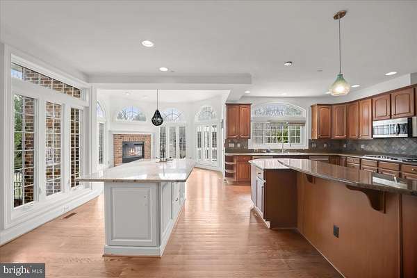 Stately brick-front colonial set on a premium 5-acre lot backing to the scenic fairways of Twin Lakes Golf Course in the coveted Twin Lakes community of Clifton. Offering over 7,000 square feet of luxurious living space, this impressive residence combines elegant design with exceptional comfort and functionality. A grand portico entry welcomes you into the dramatic two-story foyer highlighted by gleaming hardwood floors and architectural columns. Formal dining room creates an elegant setting for entertaining featuring accent molding and a striking modern chandelier. At the heart of the home is the gourmet kitchen, thoughtfully designed with two oversized islands, granite countertops, abundant wood cabinetry, and stainless steel appliances. The sunlit breakfast room is surrounded by windows and features a cozy fireplace and access to the deck, perfect for enjoying tranquil views. A front porch provides a second front entrance to the kitchen through a convenient mudroom, with adjacent laundry room, and powder room. The spacious family room showcases a stunning stone fireplace and flows seamlessly into the sunroom, which features its own private balcony with stairs leading to a second deck overlooking the beautifully landscaped grounds. Additional main-level highlights include a library with built-in bookcases, a spacious home office with built-ins off the foyer, and a second powder room. Dual staircases lead to the upper level and overlook below. The expansive primary suite is a true retreat, elegantly divided by architectural columns into a bedroom and sitting area, and complemented by a luxurious en suite bath with jetted soaking tub, separate shower, and dual vanity, and a large walk-in closet. Three additional upper-level bedrooms each feature their own private en suite full bathroom. The finished lower level expands the living space with a large recreation room with fireplace and wide walk-up stairs to the yard, two additional bedrooms, a full bathroom, home theater, den, and multiple versatile bonus rooms and powder room completing this level. Outside, the beautifully landscaped 5-acre lot backs to mature woods and the golf course, offering privacy and picturesque views. Enjoy the lifestyle of a premier golf course community while being conveniently located near major commuter routes providing direct access to Washington, DC and Alexandria, along with abundant shopping, dining, and entertainment options nearby
