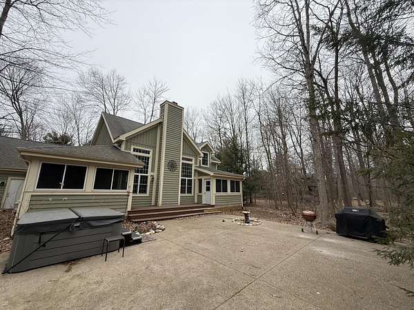 Privacy and serenity are yours in this charming, turnkey 3br/2.5ba Cape Cod home with easy access to Warren Dunes, all on 1.7 acres! The open floor plan welcomes you with a cathedral ceiling in the light-filled living area with a stunning stone fireplace and views of the back patio and woods. Main floor primary suite has a beautiful spa-style bath with a walk-in shower and opens to a private screen porch. Nicely appointed kitchen has granite counters, island seating and opens to the living and dining areas. Step from the living room into a terrific heated sunroom to watch a movie, play a card game or just relax with a book. Upstairs bedrooms have a shared bath. Backyard patio is ideal for entertaining or gathering around the fire pit for s'mores under the stars. This is an ideal year-round home, with a nice short-term rental history. Close to Three Oaks, New Buffalo, beaches and more, this could be your MI dream home!