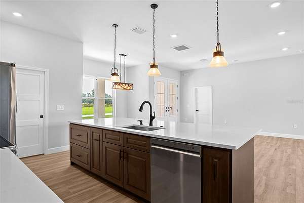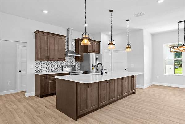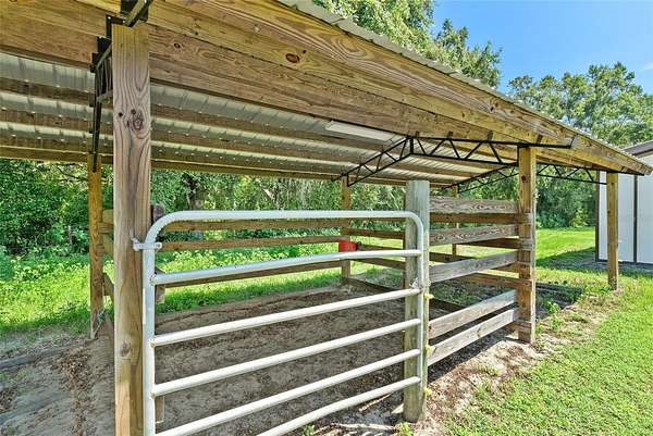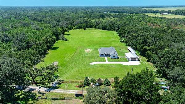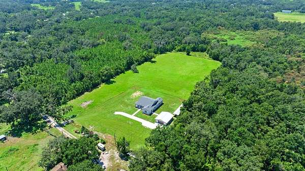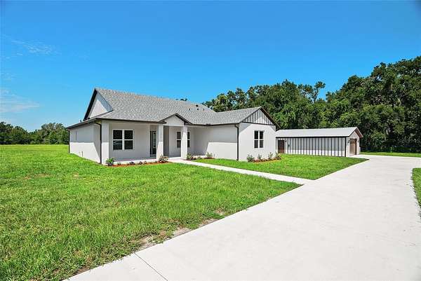 One or more photo(s) has been virtually staged. Welcome to this beautifully crafted modern farmhouse offering 2,522 sq ft of living space, nestled on 7.69 acres in a quiet, secluded location at the end of the road in San Antonio, FL. This property is an oasis of peace and privacy while being just minutes from I-75 and SR 52 for easy commuting. Key features include a spacious, open floor plan, quartz countertops throughout, a large flex room that can be used as an office, playroom, or gym. This property is perfect for animals including horses, livestock, and pets. Ideal for cultivating your dream garden or homestead. The large enclosed pole barn is perfect for additional storage, vehicles, workshop, or equipment, and there is a second open pole barn with stalls. No HOA so enjoy the freedom to personalize. All of this including quick access to major highways yet still tucked away in nature. With the peaceful charm of country living and plenty of room for family, animals, and hobbies, this is the ideal property for anyone looking for space, privacy, and convenience. Schedule a tour today and experience this amazing property!