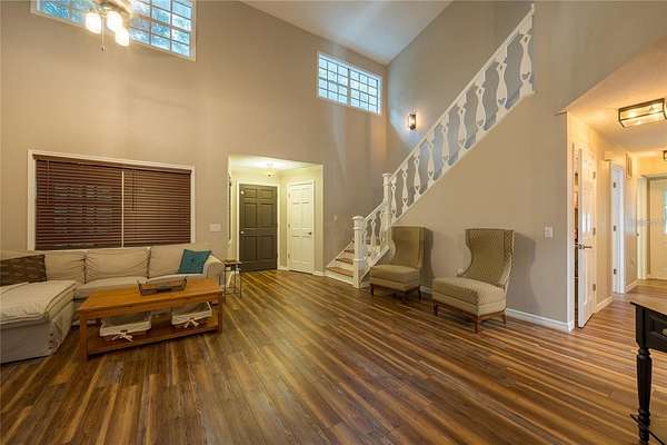 - Cathedral Ceiling(s), High Ceilings, Open Floorplan, Primary Bedroom Upstairs, Solid Surface Counters, Solid Wood Cabinets, Vaulted Ceiling(s), Walk-In Closet(s), Window Treatments