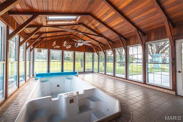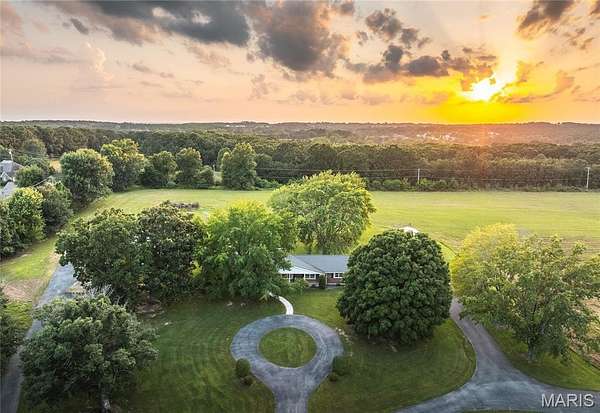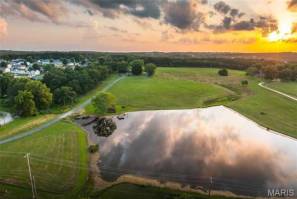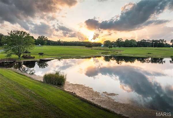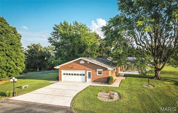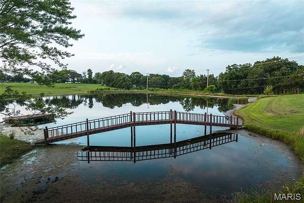 Welcome to your private retreat--an incredible property situated on 18.44 acres of beautifully maintained land on the edge of town. At the heart of the acreage lies a stunning 2.8-acre private lake, complete with a dock, a picturesque walking bridge & a charming gazebo. A paved driveway leads you past the lake, along the pasture, to the shaded circle drive in front of the one-owner custom built home. The all-brick ranch offers 2,662 sq/ft of living space above a full basement. A covered front porch invites you inside through beautiful french doors, where you'll find a spacious, well-maintained interior. The main living room features a cozy gas fireplace, while the large basement family room includes a second gas fireplace. The kitchen is a dream for any home chef, with a large island, double oven, trash compactor, a 3-bay sink & ample cabinet space. One of the home's most unique features is the indoor swim spa--perfect for year-round exercise & relaxation in the privacy of your own home. Step outside to enjoy a back patio overlooking the peaceful landscape. Great for outdoor dining, or simply soaking in the views. For those who need space for projects, hobbies, or extra storage, this property delivers two impressive workshops: one measuring 45x50' with 2 pull-through overhead doors and propane heaters to keep you comfortable in the winter. The other is 20x15' with an overhead door as well. This one-of-a-kind property is ready for the next homeowner to make it their own.