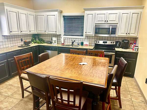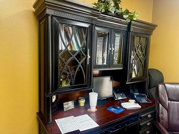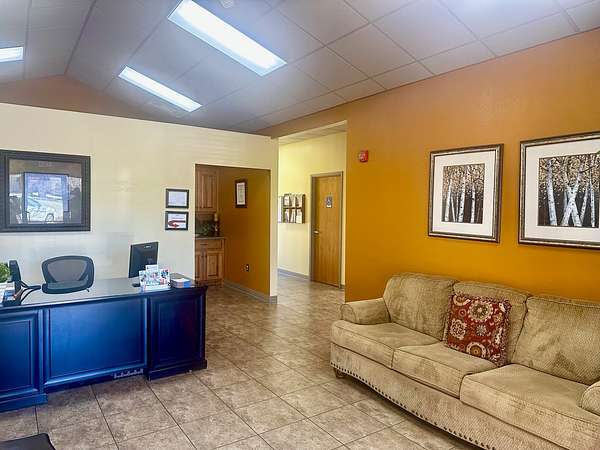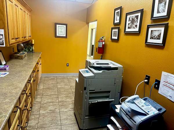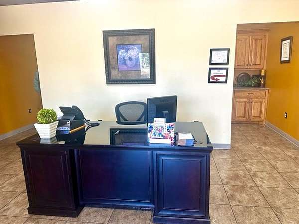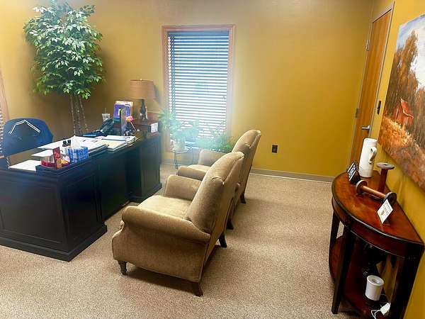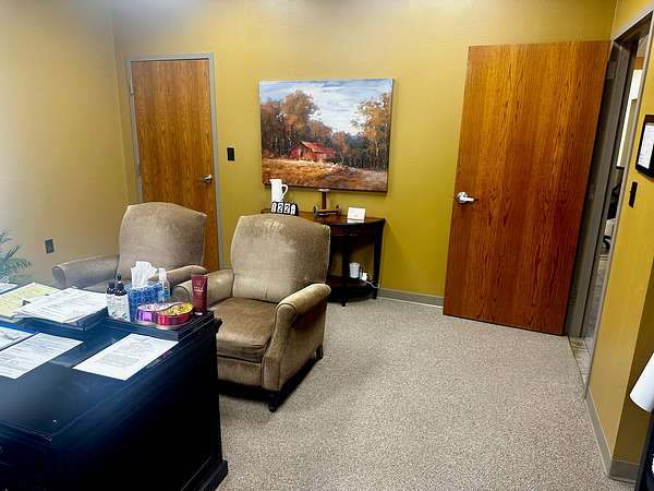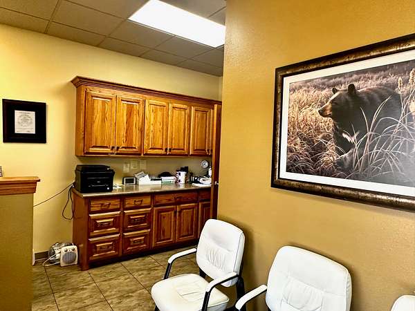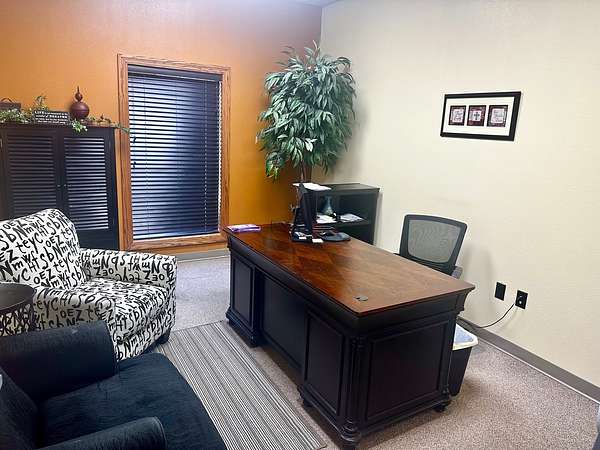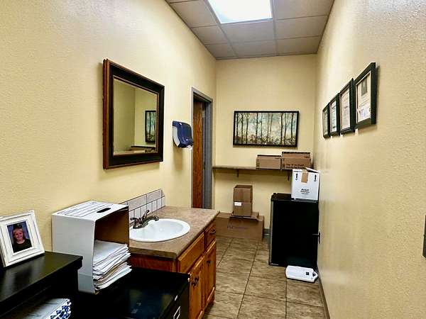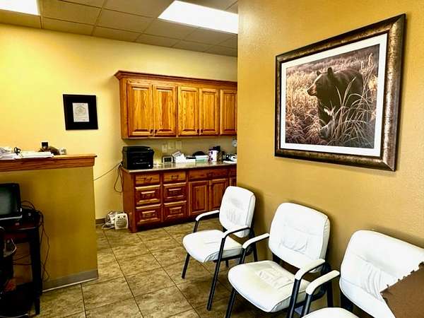 Building is currently being used a Counseling Service it has a large Reception area with a work room off of it for printers with extra storage cabinets and Men/Women bathrooms. The building has 3 private offices and 1 Large Executive Office with its own private bathroom. There is a Tornado Safe Room in center of building that has file cabinet storage for all your important records. Every office space needs a break room and it has a large kitchen with Custom Knotty Alder Cabinets and Granite Counters with Stainless Steel Appliances and Satellite TV to enjoy while you take a break.