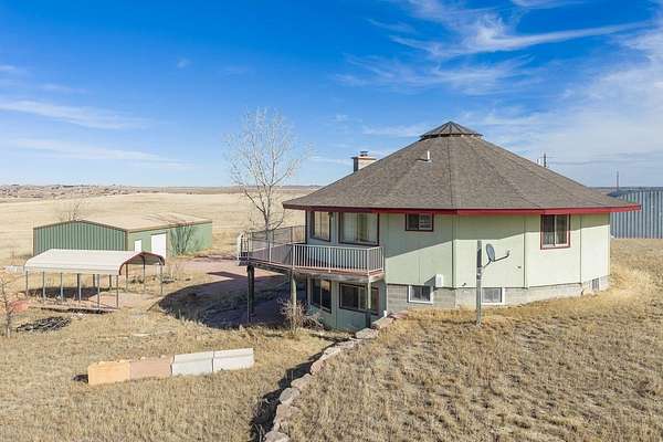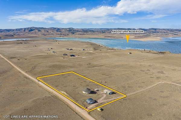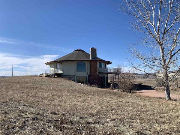 UNIQUE 17-SIDED LAKEVIEW HOME. Situated on 5 acres on the south side of Angostura Lake, this Chesapeake Model Deltec Home is definitely unique and has great vistas of Angostura Lake and the surrounding area. 2910 square feet. 3 bedroom- 2 & 1/2 baths. Main floor office could be a non-conforming bedroom. Two bedrooms in basement are non-conforming. (No egress windows) Fireplace. Back-up generator. Detached 2-car garage. Carport. Quonset hut. Sellers own a total of 40 acres including this parcel. They might consider selling the entire 40 acres if there is interest from prospective Buyers. There is a cell tower located on the 40 acres and access to the cell tower is an easement through this 5-acre parcel.