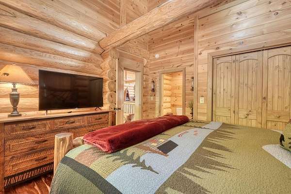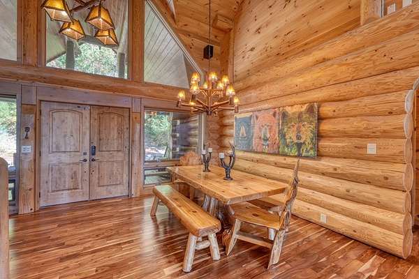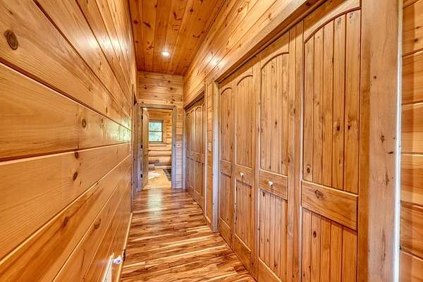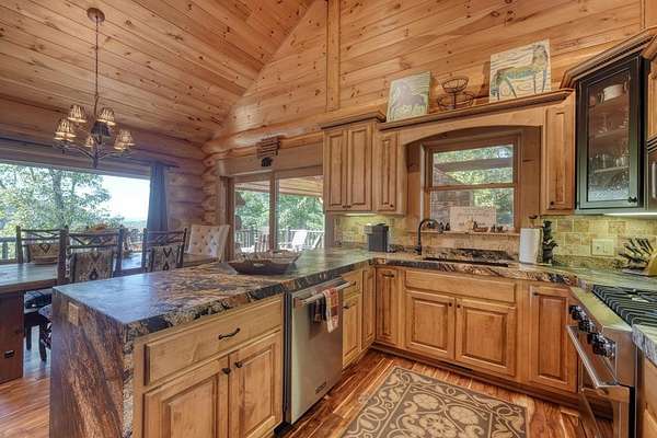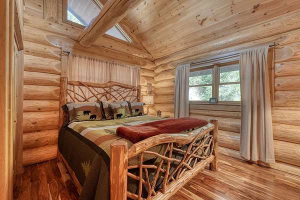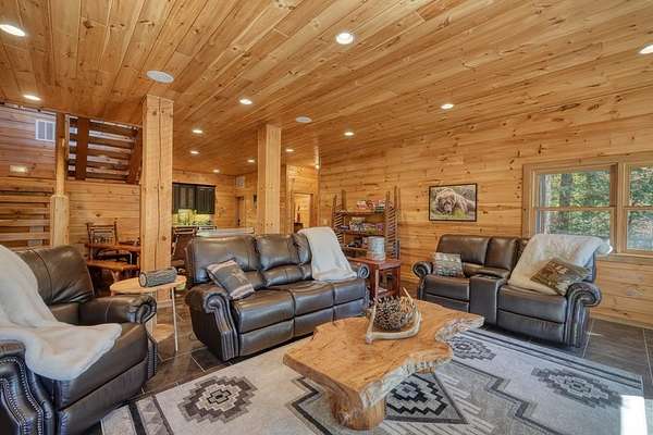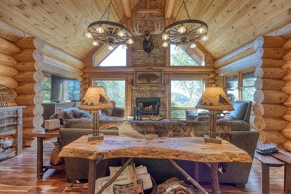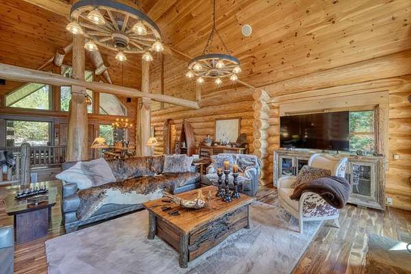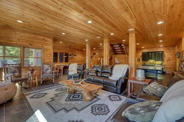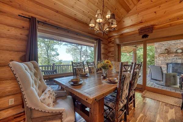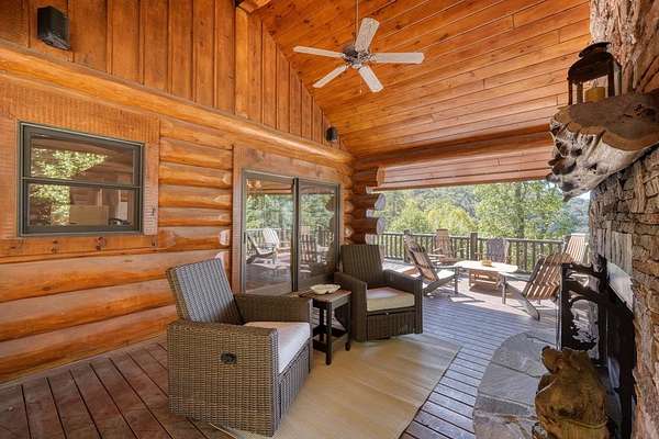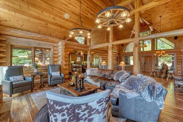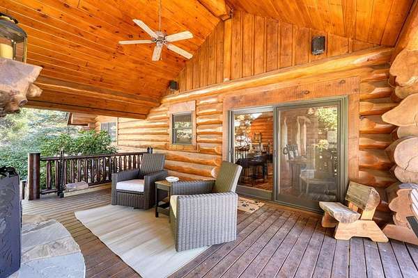 Authentic Canadian Log home in the heart of Blue Ridge - a masterpiece of massive hand-hewn logs w/ 4 spacious bedrooms (including a fun bunk room for the crew) and 3.5 baths. Three massive stone fireplaces crackling with mountain magic, and cozy porches to view gorgeous sunsets & mountain views. You will gaze in awe of the master craftsmanship & incredible wood carvings throughout. Add a Chef's kitchen w/ waterfall counter, Huge game room with w/ wet bar, 2 laundry areas, hot tub, 2 car garage (extra high doors), private well & community well (2 water sources) & whole home generator. Large lot with 1.75 acres in gated community with all paved access, just 5 miles to downtown, Lake Blue Ridge & Toccoa River & USFS Trails. Would be great vacation rental - Perfect place for unplugging and hosting EPIC Blue Ridge vacations!