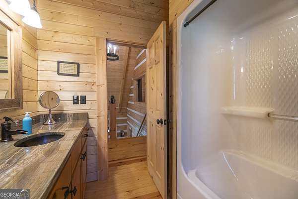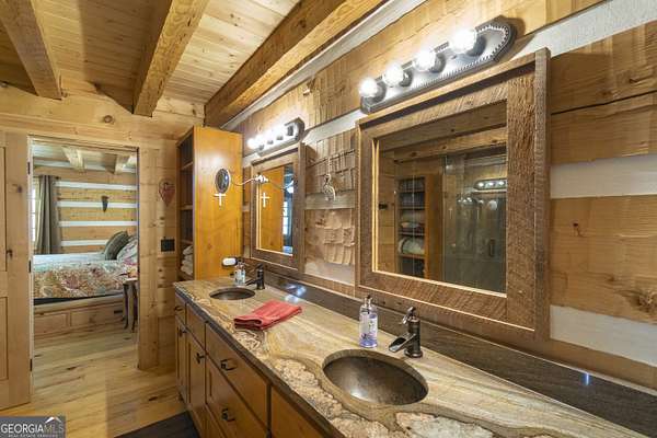 - Beamed Ceilings, Double Vanity, High Ceilings, Master On Main Level, Separate Shower, Tile Bath, Vaulted Ceiling(s)