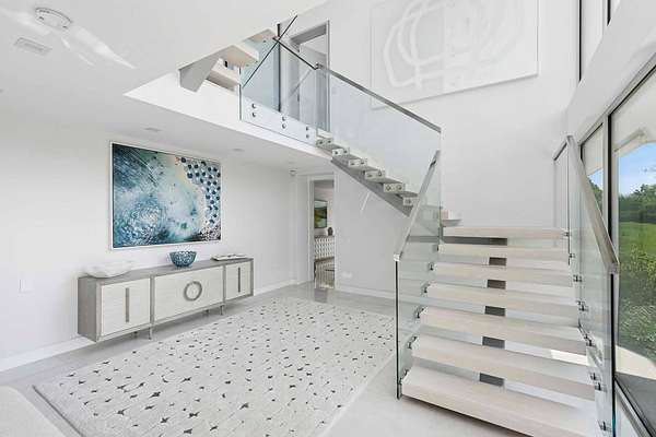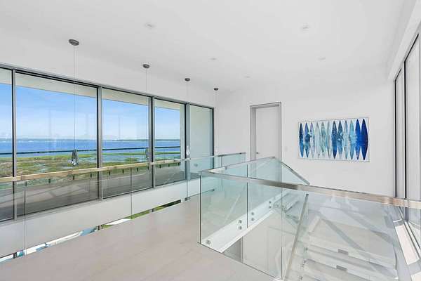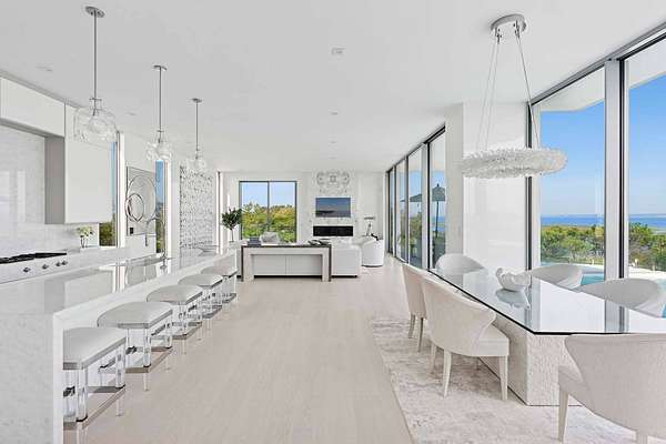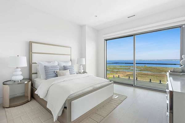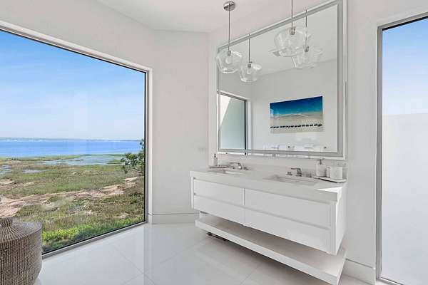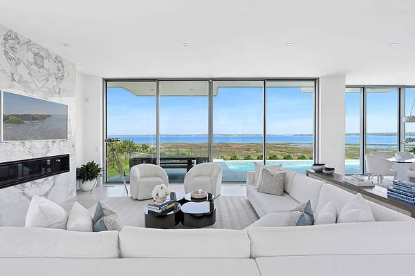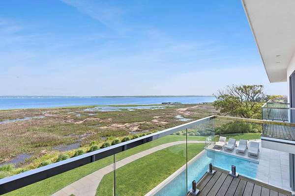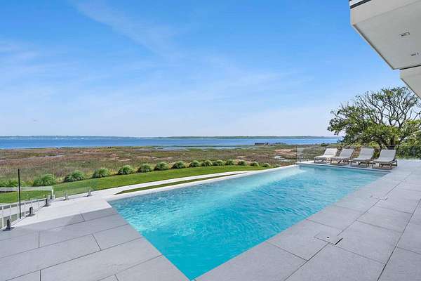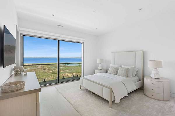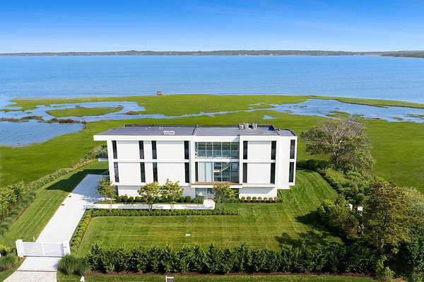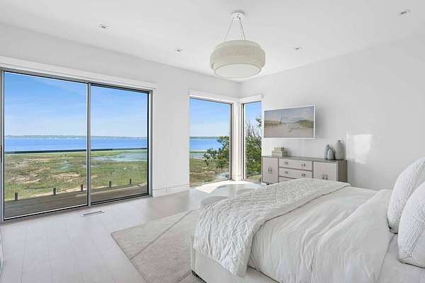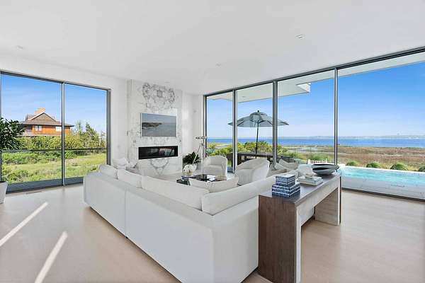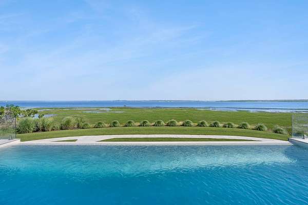 Now available, this extraordinary South of the Highway bayfront double-lot estate on Southampton Village's iconic Meadow Lane, has over 300' of waterfrontage and sweeping panoramic vistas across Shinnecock Bay and ocean views. With a commanding western exposure, this 5,300 +/- sq. ft. home is bathed in natural light from floor-to-ceiling windows and doors, inviting the outdoor scenery inside. Clean lines, wide-plank flooring, and uninterrupted sight lines define the interiors, emphasizing the home's architectural purity and surrounding beauty. The sun-filled main level centers around an elegant living room with a fireplace and dining area overlooking the bay. A modern chef's kitchen seamlessly connects to outdoor entertaining spaces. Five en-suite bedrooms provide luxurious accommodations, each with serene views and spa-like appointments. Outside, the gated grounds are equally impressive, featuring a waterside heated gunite saltwater pool highlighted by landscaping that embraces the waterfront setting. An attached 2-car garage, gated entry, and ample parking space complete the property.