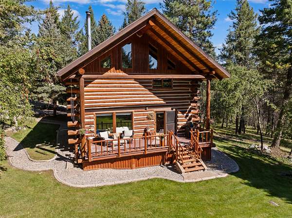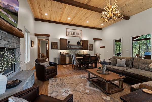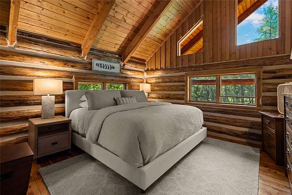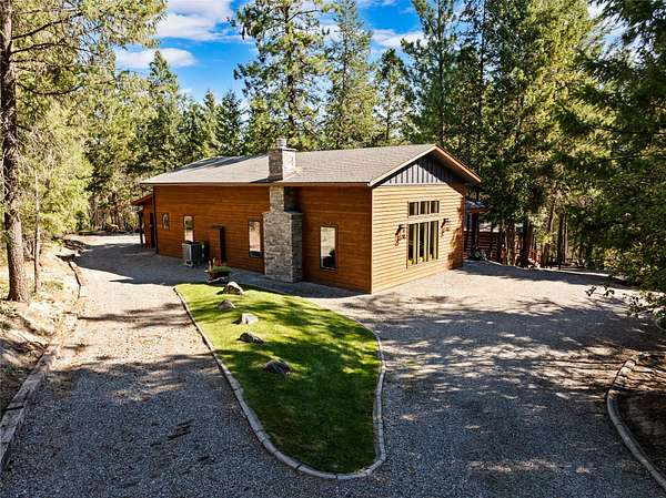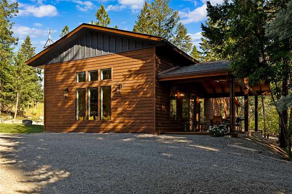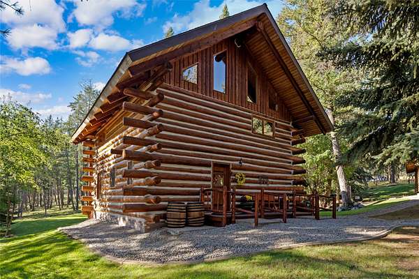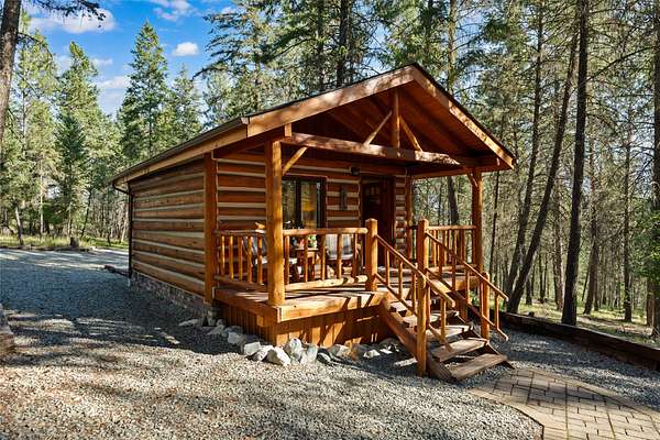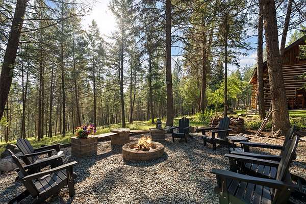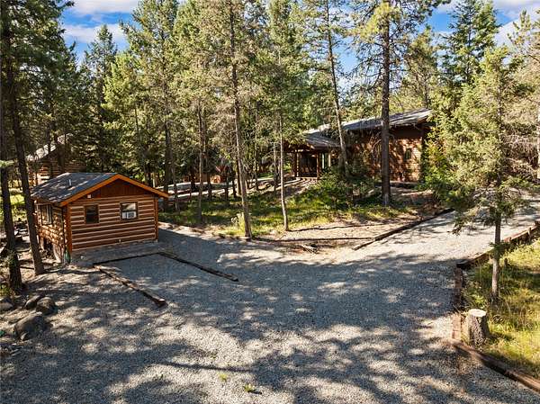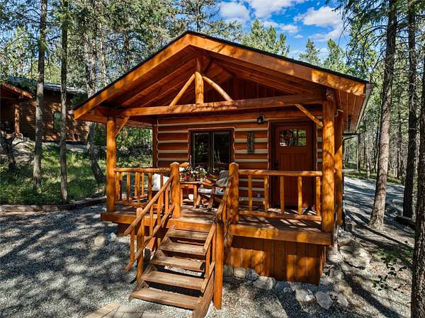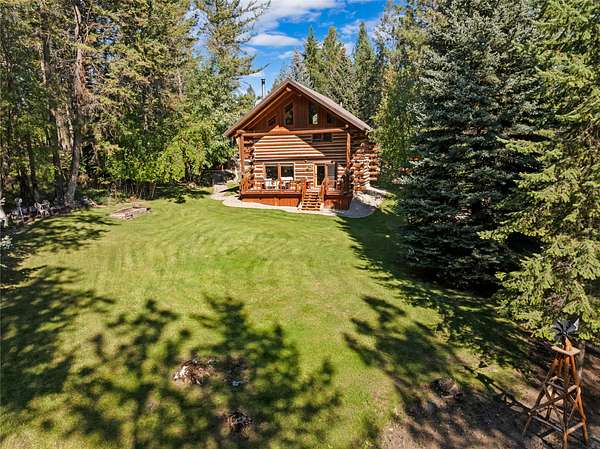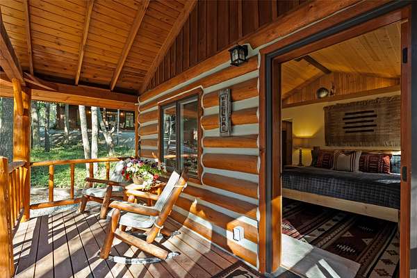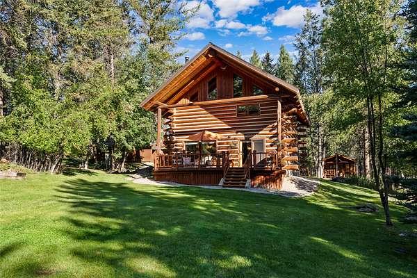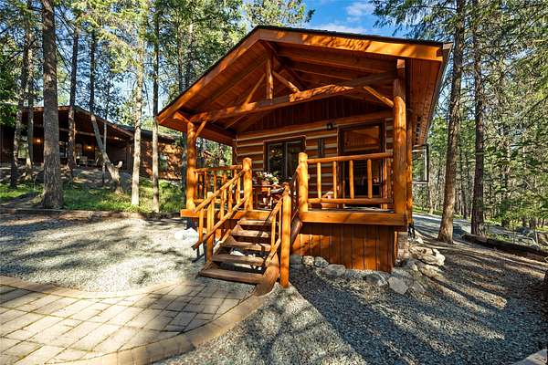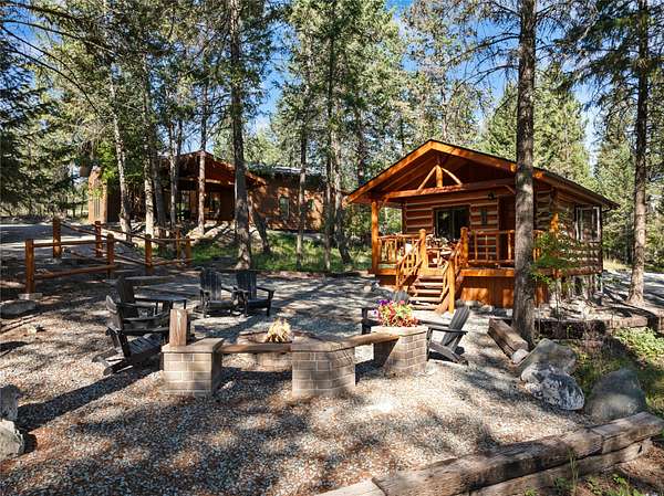 Nestled among towering pines along the pristine Tobacco River and bordered by USFS land, this extraordinary 8-acre retreat is designed for entertaining and hosting in style. A circular driveway connects three turnkey dwellings complete with furnishings, two RV spots, and multiple outdoor spaces to unwind; whether on a covered deck or beside the rock fire pit overlooking the river. The newly finished cedar-sided main cabin is a masterclass in craftsmanship, with 14' tongue-and-groove ceilings, solid wood beams, and a dramatic stone fireplace. Flooded with natural light, it features dual ensuite bedrooms, a great room, wet bar, and large sliding doors for effortless indoor/outdoor entertaining. The original log cabin offers vaulted open-beam ceilings, granite countertops, a cozy upstairs suite, and a welcoming main-floor bedroom and bath. The charming third guest cabin includes a bedroom & bath. With generous bonus space, the property sleeps 12-ideal for gatherings or VRBO income. For those traveling with RVs, enjoy two spots for parking and a full-hookup pad. A detached garage offers ample space for vehicles, gear, or workshop pursuits. Here, seclusion meets convenience, with lakes, mountains, and hiking trails just moments away. More than a home, this is a legacy property-an invitation to live the Montana lifestyle without compromise. Property includes all furniture, decor and essentials.