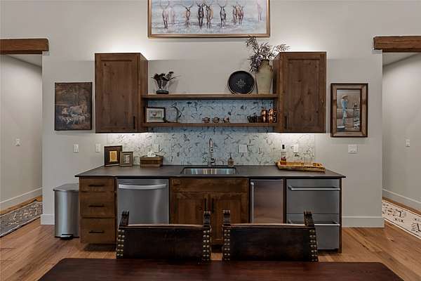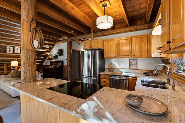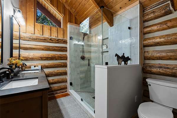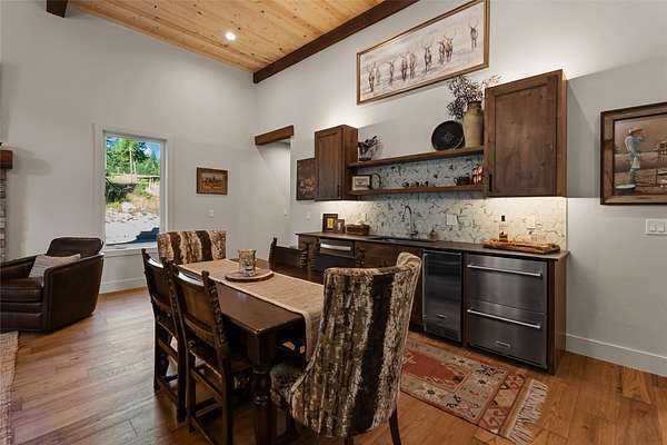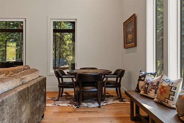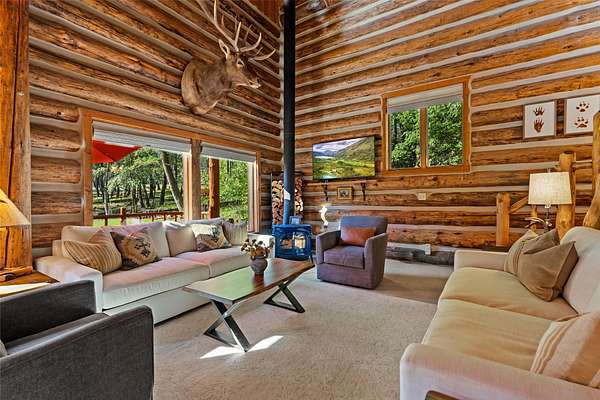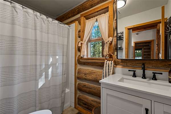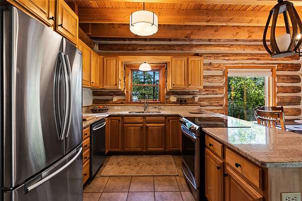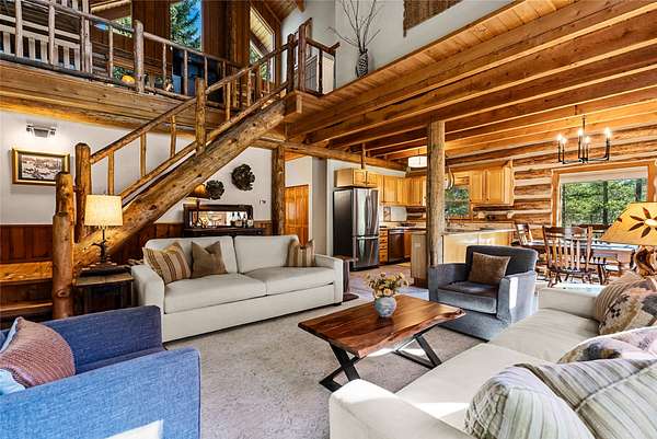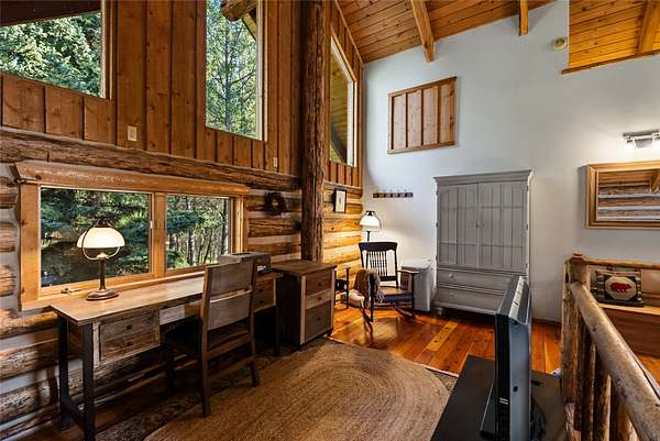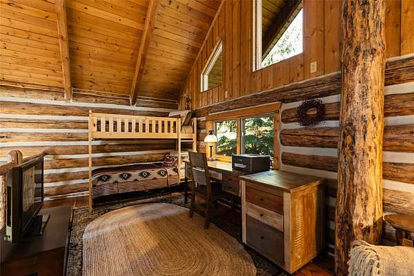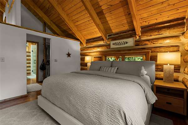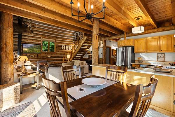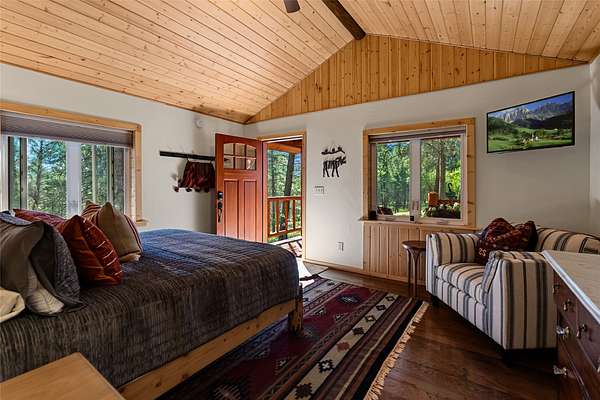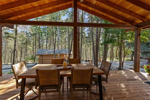 Nestled among towering pines along the pristine Tobacco River and bordered by USFS land, this extraordinary 8-acre retreat is designed for entertaining and hosting in style. A circular driveway connects three turnkey dwellings complete with furnishings, two RV spots, and multiple outdoor spaces to unwind; whether on a covered deck or beside the rock fire pit overlooking the river. The newly finished cedar-sided main cabin is a masterclass in craftsmanship, with 14' tongue-and-groove ceilings, solid wood beams, and a dramatic stone fireplace. Flooded with natural light, it features dual ensuite bedrooms, a great room, wet bar, and large sliding doors for effortless indoor/outdoor entertaining. The original log cabin offers vaulted open-beam ceilings, granite countertops, a cozy upstairs suite, and a welcoming main-floor bedroom and bath. The charming third guest cabin includes a bedroom & bath. With generous bonus space, the property sleeps 12-ideal for gatherings or VRBO income. For those traveling with RVs, enjoy two spots for parking and a full-hookup pad. A detached garage offers ample space for vehicles, gear, or workshop pursuits. Here, seclusion meets convenience, with lakes, mountains, and hiking trails just moments away. More than a home, this is a legacy property-an invitation to live the Montana lifestyle without compromise. Property includes all furniture, decor and essentials.