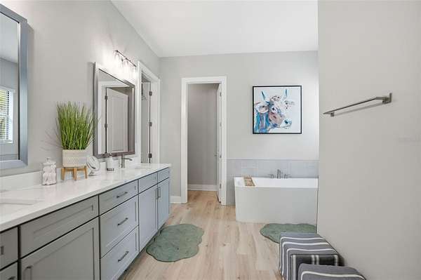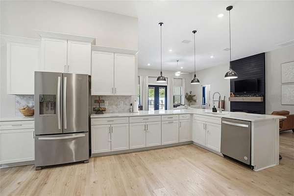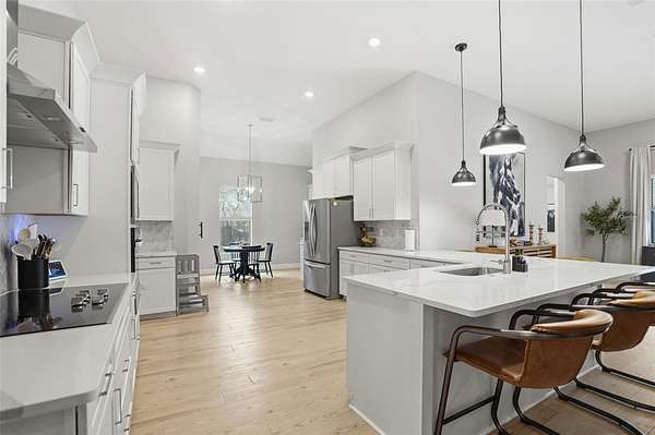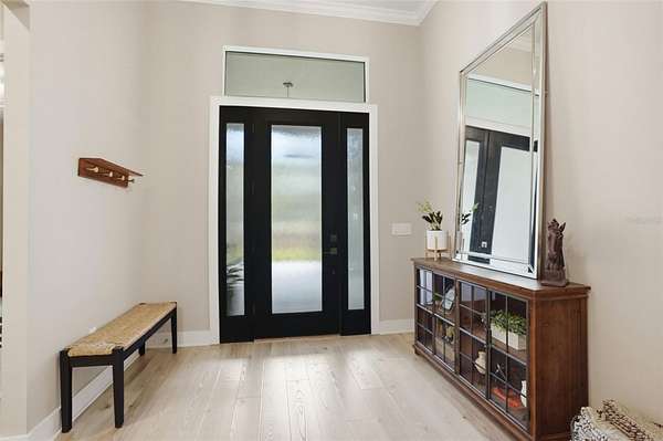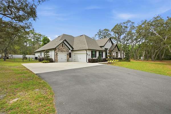 Home has ALL the upgrades and all the extras added on after the home was completed... vinyl privacy fencing, interior design features, custom decorative fireplace, window treatments, and more!! Built in 2023, so everything is NEW - ROOF, HVAC, APPLIANCES, ELECTRIC, PLUMBING, EVERYTHING!! Walk-in and be impressed with this HIGH ceilings, large windows and glass french doors, and open floor plan which make this home feel super spacious, light, bright, and cheery! The chef's kitchen will draw your family into it with it's gorgeous Quartz countertops and LARGE Quartz breakfast bar for extra seating, endless upgraded 42" upper cabinets for storage, breakfast nook, coffee bar, coveted butler's pantry, stainless steel upgraded appliances and cooktop with range hood, built-in oven and microwave and walk-in pantry!! You will ENJOY every minute in this kitchen - the centerpiece fo this home!! The kitchen is open to the large great room with views of the private backyard where all you will see are beautiful tress (no rear neighbors to look at or to look at you)!! The media room is a bonus room you can use for anything that fits your lifestyle from a theater room, extra private living room, gym, playroom with the little ones, or office for those that work from home!! The split floor plan offers privacy for the spacious master suite with large ensuite bathroom with dual sinks, Quartz countertops, stand alone modern tub, walk-in tiled shower, and large walk-in closet! The second and third bathrooms also have all the upgraded, matching finished and features! The laundry room is spacious and well-designed! The home sits back off the road secluded in the trees for privacy!! All roads are paved. The community is gated and offers 6 miles of horse trails. Located less than 10 minutes from the Suncoast Parkway for easy and quick access to Tampa! Close to Publix, shoppes, sunsets at the restaurants on Hudson Beach, boating, kayaking, fishing, swimming at SunWest, swimming with the manatees on the river! 1 hour to TOP US BEACHES!! Great location, great community, large acreage lots for space and privacy, gorgeous million dollar homes being built, horse trails, lots of paved space for walking and riding bikes, no CDD fees, low HOA fee helps keep your neighborhood values up and the well-maintained. Enjoy your life in this new home and beautiful community!!