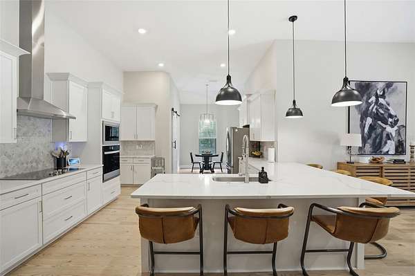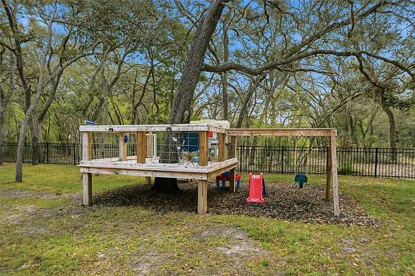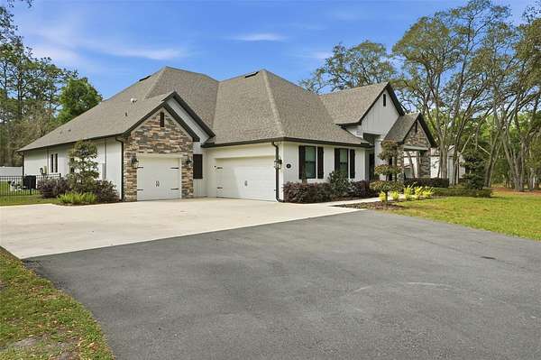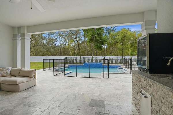 4 bedrooms + custom office + media room + 3 full bathrooms + 3 car attached garage + BRAND NEW IMPRESSIVE CUSTOM SALT-WATER PRIVATE HEATED POOL with sunshelf + HOT TUB/SPA + expansive paver pool deck + outdoor covered patio with outdoor summer kitchen + LARGE DETAHCED GARAGE/BUILDING (30x65 metal building with a 14ft roll up door for rvs and a 24x12 concrete lean to) + fenced yard for pets and family + extra long PAVED driveway for extra parking with added brick pavers to the walkway and front porch + 4,000 water filtration system + 220v Tesla charger + nestled in the beautiful trees on 3.12 ACRES in the gated and growing community of BELLA TERRA with large acreage homesites for space and privacy!! NO FLOOD! NO CDD FEE! The pool also has Aqualink upgrade with means you can be playing golf and turn on your spa from your phone so it’s nice and hot when you get home! Large custom tree-house for years of family fun! Custom office was just completed – no other Waycross home has this!