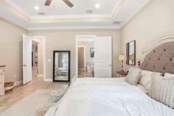 - Ceiling Fans(s), High Ceilings, Open Floorplan, Primary Bedroom Main Floor, Tray Ceiling(s), Walk-In Closet(s)