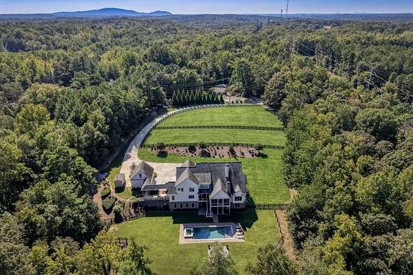 Welcome to this exceptional estate in the heart of Milton, Georgia where luxury living meets peaceful county charm. Situated on 11.67 acres, this one-of-a-kind property features a tacked pond, two fenced pastures, a custom barn, chicken coop, donkey house, and a thriving garden with raised beds - perfect for those seeking a refined farm lifestyle, Step inside the beautifully custom-built home and experience soaring ceilings, an open-concept floor plan, and a chef's kitchen designed for entertaining. The oversized owner's suite offers a private retreat with comfort and elegance at every turn. Enjoy breathtaking views from the screened porch overlooking the resort-style backyard - complete with a sparkling pool, hot tub, fire pit, and your own private pond. Upstairs, you'll find four spacious bedrooms and multiple bathrooms, including a second master suite and a separate private office - ideal for guests or multip-generartional living. The fully finished basement elevates the home even further, featuring a private gym, sauna, playroom, and dedicated dog shelter. Located just minutes from downtown Crabapple, downtown Alpharetta and downtown Roswell, this estate offers the perfect balance of convenience and unmatched privacy. A rare opportunity to own a private retreat with luxury amenities in one of North Atlanta's most desirable communities.
