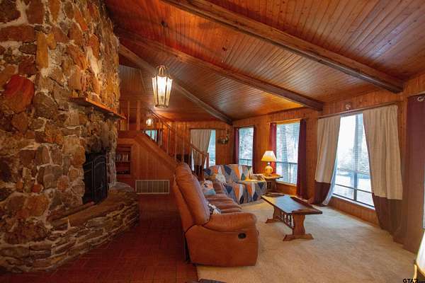 Discover this one-of-a-kind 3-bedroom, 2-bath home with a 3-car carport, perfectly set on 4.149 beautiful acres. From the moment you step inside, you’ll notice the incredible craftsmanship and character that make this home truly stand out. Beautiful wood paneling flows through the main living areas, adding warmth and timeless charm throughout the home. The spacious living room is the heart of the home—anchored by a grand stone fireplace that instantly draws your attention and surrounded by large windows that fill the space with natural light. The kitchen and dining areas offer plenty of room for gathering, while each bedroom and bathroom provides generous space and comfort for everyday living. Upstairs, you’ll find a second-floor retreat complete with its own balcony and exterior staircase—perfect for enjoying peaceful country views. The third bedroom is exceptionally large and even features its own fireplace, making it an inviting and versatile space that can be used as a primary suite, guest quarters, or entertainment area. Recent updates include a new roof in 2020, freshly painted upstairs bedrooms in 2024, and a new A/C unit for added peace of mind. Outside, a storage shed provides extra space for all your tools, hobbies, or outdoor equipment. With over 4 acres of land, timeless details, and thoughtful updates, this property offers endless possibilities and a true sense of home.