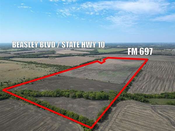 Beautiful rolling topography with cultivated acreage, scattered trees, and a serene stock pond. The property includes a pole barn with a corral and gated entry, and is fully fenced for security and livestock. Enjoy approximately 1,300 feet of frontage along FM 697. Co-op water and electricity are available off-site, and the land offers subdivision potential. The property carries AG exemption status. No mineral rights will transfer, and the buyer will be responsible for any rollback taxes. Seller is open to financing with a substantial down payment.