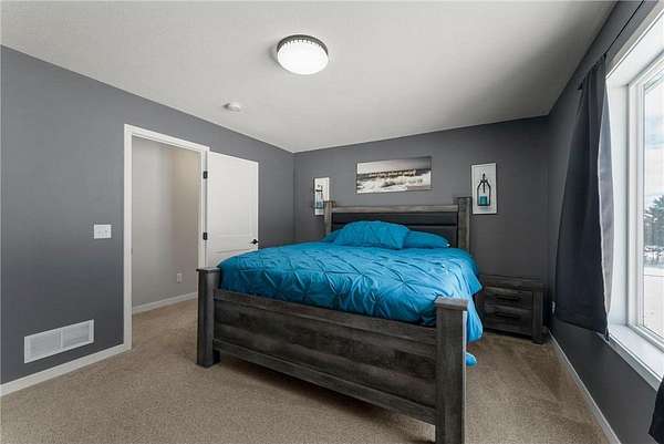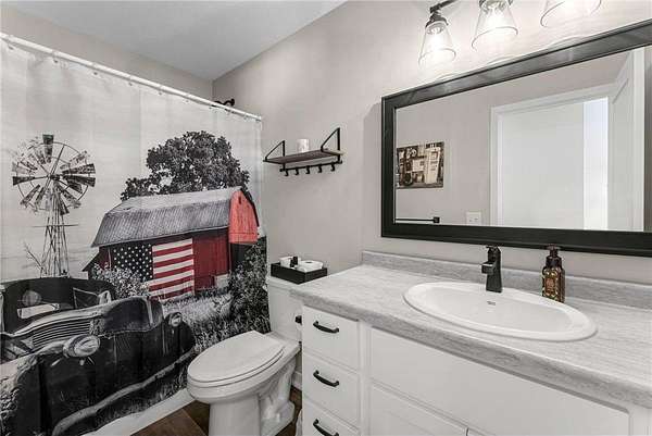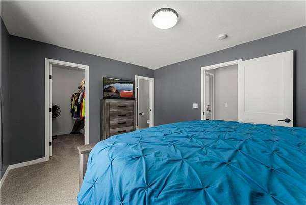 The primary suite includes a private bath with dual vanity and a 4-foot walk-in shower, while the second main-floor bedroom features a large walk-in closet. The lower level is ready for your future plans, already roughed in for an additional bathroom and offering plenty of room to add another bedroom, family room, or hobby space.