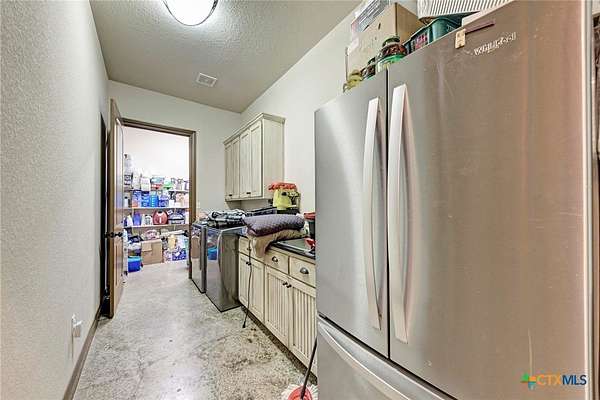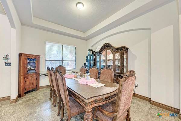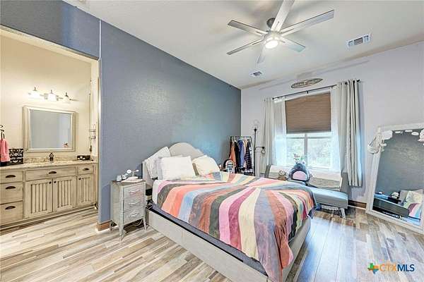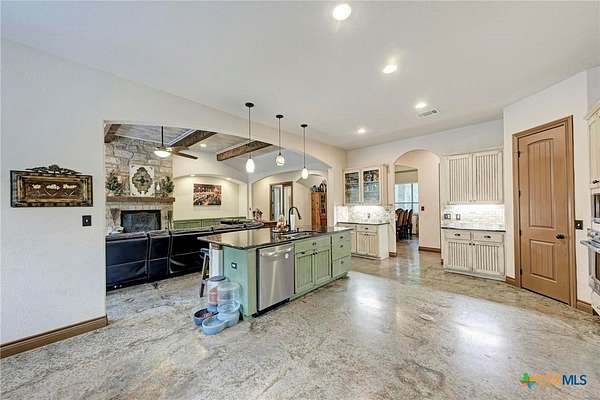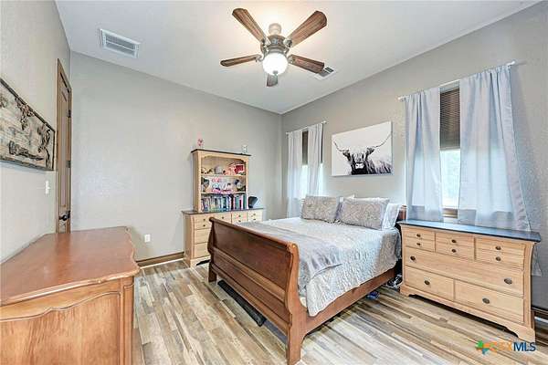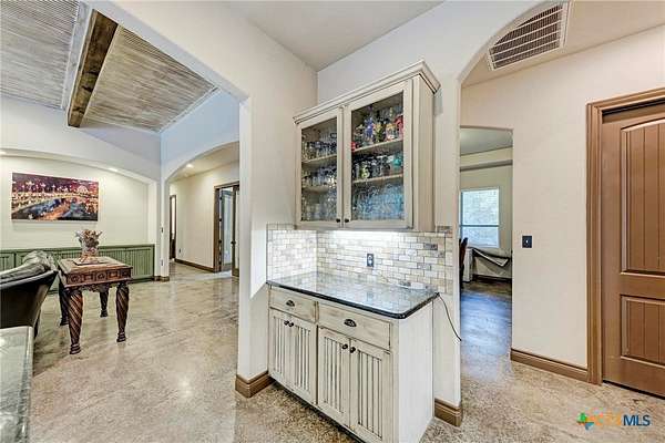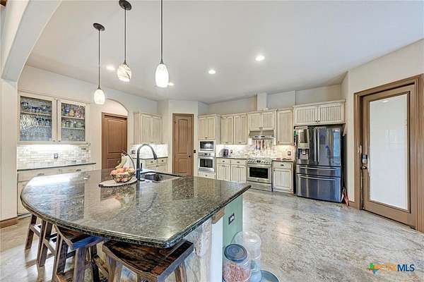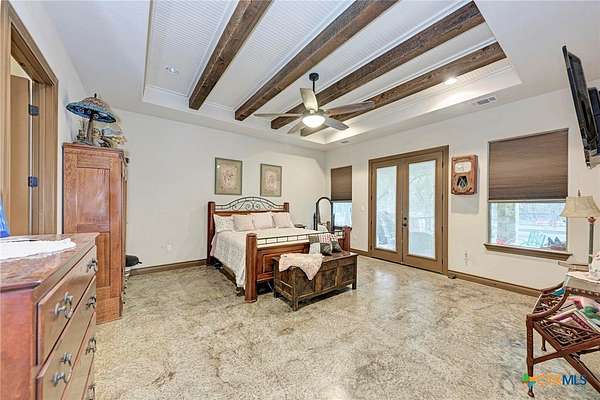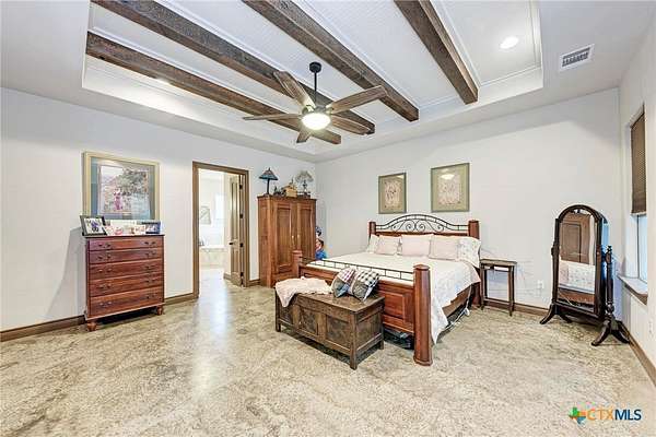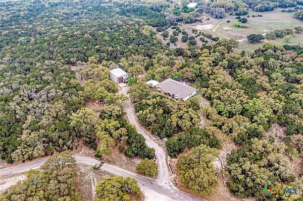 Tucked away on four sprawling acres of lush Texas countryside and located just a few miles from Lampasas is this hidden gem estate. Built-in 2015, this 3,767 sq ft custom home offers a warm embrace of country luxury, where every detail is thoughtfully crafted. Step inside and be captivated by the dramatic ten to fourteen-foot ceilings that elevate each room. The heart of the home, a designer kitchen, boasts custom country cabinets, exposed beam ceilings with tongue and groove accents, and rich, dark granite countertops that create a stunning focal point. An open floor plan, featuring cool stained concrete floors, seamlessly connects the inviting living spaces, ideal for family and entertaining. With five bedrooms and three and a half baths, including a serene master suite, comfort is paramount. Guest rooms offer wood-look luxury vinyl plank floors and spacious walk-in closets. Eight-foot doors and expansive windows bathe the interior in natural light, while a generous back deck invites you to unwind and enjoy the tranquil surroundings. The heavily wooded lot is adorned with majestic oaks and provides a peaceful backdrop to everyday life. A versatile shop allows for storage and RV parking. A 500+/- sq ft unfinished apartment with a private balcony above the shop is ideal for short-term or long-term family members or rental income. This beautiful home sits beyond a gated entrance to ensure a sense of security. Schedule your private showing today. *Property is also for Lease for $3,000 a month