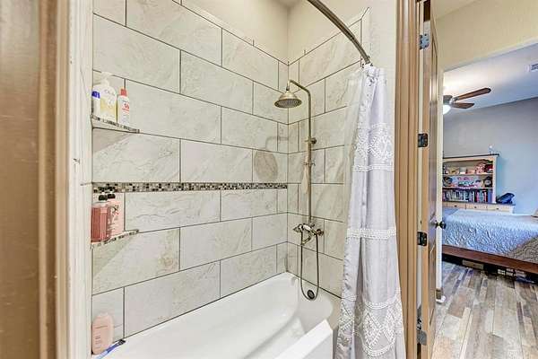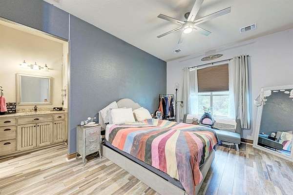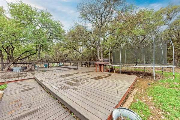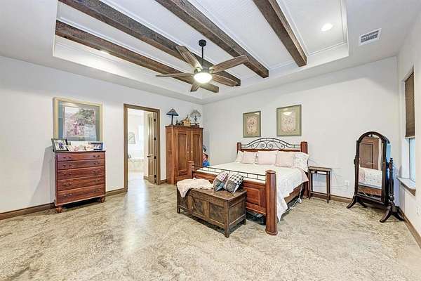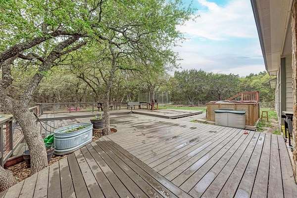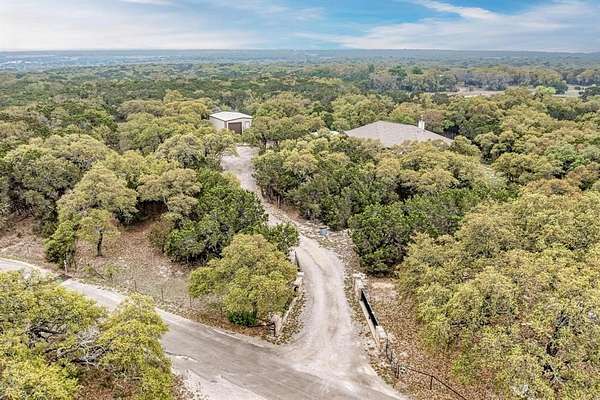 Tucked away on four sprawling acres of lush Texas countryside and located just a few miles from Lampasas is this hidden gem estate. Built in 2015, this 3,767 sq ft custom home offers a warm embrace of country luxury, where every detail is thoughtfully crafted. Step inside and be captivated by the dramatic ten to fourteen-foot ceilings that elevate each room. The heart of the home, a designer kitchen, boasts custom country cabinets, exposed beam ceilings with tongue and groove accents, and rich, dark granite countertops that create a stunning focal point. An open floor plan, featuring cool stained concrete floors, seamlessly connects the inviting living spaces, ideal for family and entertaining. With five bedrooms and three and a half baths, including a serene master suite, comfort is paramount. Guest rooms offer wood-look luxury vinyl plank floors and spacious walk-in closets. Eight-foot doors and expansive windows bathe the interior in natural light, while a generous back deck invites you to unwind and enjoy the tranquil surroundings. The heavily wooded lot is adorned with majestic oaks and provides a peaceful backdrop to everyday life. A versatile shop allows for storage and RV parking. A 500 give or take sq ft unfinished apartment with a private balcony above the shop is ideal for short-term or long-term family members or rental income. This beautiful home sits beyond a gated entrance to ensure a sense of security. Schedule your private showing today.